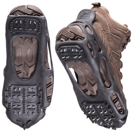 Οι καιρικές συνθήκες δεν πρέπει να επηρεάζουν τις δραστηριότητες και τις μετακινήσεις έξω από το σπίτι, έτσι με το σετ αντιολισθητικών για τα παπούτσια σας μπορείτε να μειώσετε τον κίνδυνο όταν περπατάτε σε χιόνι, πάγο ή ακόμα και σε λάσπη για να μην περιορίζεστε ποτέ. Η τοποθέτηση τους γίνεται εύκολα πάνω από τα καθημερινά σας υποδήματα, σε νούμερα 40 έως και 43.5, προσφέροντας σας ασφαλές και σταθερό περπάτημα χάρη στα καρφάκια που διαθέτουν στην περιοχή της φτέρνας αλλά και του πέλματος. Όλες οι εργασίες πλέον είναι εφικτές ανεξαρτήτως καιρικών συνθηκών, καθιστώντας το συγκεκριμένο προϊόν ένα πολύ χρήσιμο εργαλείο για ανθρώπους που εργάζονται σε εξωτερικούς χώρους με τον κίνδυνο κάποιου γλιστρήματος και ενός τραυματισμού, όπως και για άτομα που πραγματοποιούν εκδρομές σε χειμερινούς προορισμούς. Κάντε την ζωή σας πιο εύκολη και αποφύγετε τις δυσάρεστες καταστάσεις με το μοναδικό αυτό αξεσουάρ που έρχεται σε πολύ οικονομική τιμή και σε μέγεθος που σας επιτρέπει να το έχετε παντού μαζί σας, με την υπογραφή της εταιρείας Mil-Tec!