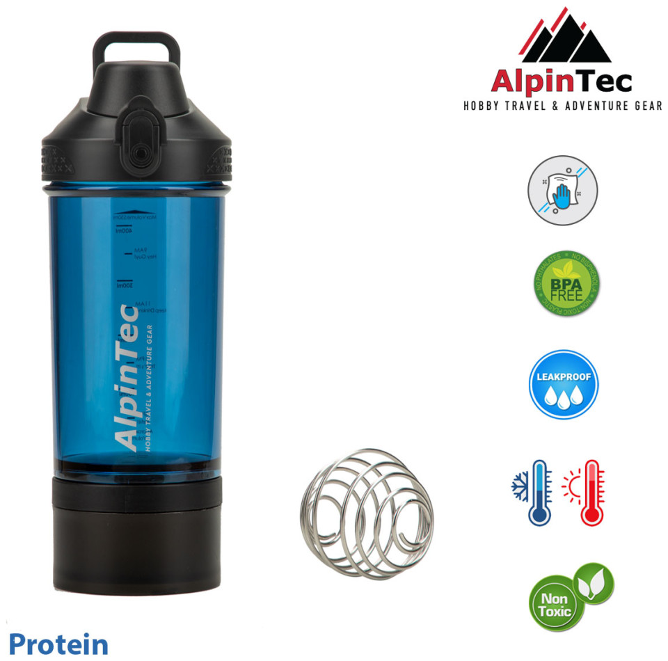 Το Παγούρι 550ml Alpintec Protein Shaker είναι ιδανικό για όλους τους τύπους ροφημάτων. Διαθέτει άριστα σχεδιασμένο αποθηκευτικό χώρο 150 ml, που βρίσκεται από κάτω, καθώς και ειδική μεταλλική μπάλα για αποφυγή σχηματισμών σβώλων. Η βαθμονομημένη κλίμακα σε ml και oz διευκολύνει τη μέτρηση των υγρών. Είναι ανθεκτικό και κατάλληλο για πλυντήριο πιάτων, φούρνο μικροκυμάτων και χρήση ψυγείου, συμμορφούμενο με τους κανονισμούς τροφίμων. Η σχεδίαση των παγουριών της AlpinTec συνδυάζει την προσοχή στη λεπτομέρεια, τον εργονομικό σχεδιασμό και την ευκολία στη χρήση, καθιστώντας την ενυδάτωση μια ξεκούραστη και ευχάριστη εμπειρία. Με όμορφη σχεδίαση και απλή χρήση, είναι ένα must-have αξεσουάρ, ιδανικό δώρο για τους αγαπημένους σας ή και για εσάς. Κατασκευασμένα από υλικά τελευταίας τεχνολογίας, τα παγούρια της AlpinTec είναι ανθεκτικά στη φθορά και ελαφριά, ιδανικά για καθημερινή χρήση. Το καπάκι διαθέτει πλατύ στόμιο για γρήγορη ροή και σιλικόνη για στεγανότητα, διατηρώντας το στόμιο καθαρό. Ο διακόπτης ασφαλείας στο καπάκι προφυλάσσει από διαρροές, ασφαλίζοντας το καπάκι και αποτρέποντας τυχαίο άνοιγμα μέσα στην τσάντα. Απλά απενεργοποιήστε το διακόπτη και πατήστε το κουμπί για να ανοίξετε το καπάκι και να πιείτε.