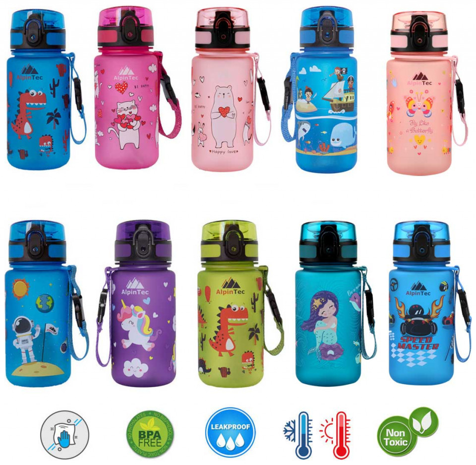 Τα παγούρια AlpinTec Kids συνδυάζουν τα όμορφα σχέδια και χρώματα που μπορούν να ενθουσιάσουν ένα παιδί, με αποτέλεσμα η ενυδάτωση να του φαίνεται σαν παιχνίδι, όπως και την αξιοπιστία και την ασφάλεια που αναζητά ο κάθε γονιός. Η κατασκευή τους αποτελείται εξ ολοκλήρου από ανθεκτικά, οικολογικά και ασφαλή υλικά, τα οποία αντέχουν στην φθορά που προκαλείται μέσα από την χρήση, ενώ η επένδυση της επιφάνειας με αμμοβολή διατηρεί το παγούρι σας πάντα σαν καινούργιο. Με διακόπτη ασφαλείας στο καπάκι, έξυπνα ενσωματωμένος στη σχεδίαση του μπουκαλιού, που προφυλάσσει από το ενδεχόμενο διαρροών, αφού ασφαλίζοντας το καθιστά αδύνατο ένα τυχαίο άνοιγμα μέσα στην τσάντα. Σημαντική και χρήσιμη λεπτομέρεια ακόμα θα βρείτε οτι διαθέτει ένα ανθεκτικό λουράκι, κατασκευασμένο από μεταξένιο υλικό, που εξασφαλίζει την εύκολη μεταφορά χωρίς να τραυματίζει το δέρμα, διαθέτοντας μάλιστα ένα άνοιγμα αρκετά μεγάλο για να να ταιριάζει σε κάθε καρπό. Φτιάξτε τους δικούς σας συνδυασμούς αντικαθιστώντας το καπάκι, προσθέτοντας το ανταλλακτικό που διαθέτει καλαμάκι και αμέσως θα έχετε ένα ολοκαίνουργιο παγούρι, χωρίς να χρειαστεί να αγοράσετε ένα νέο.