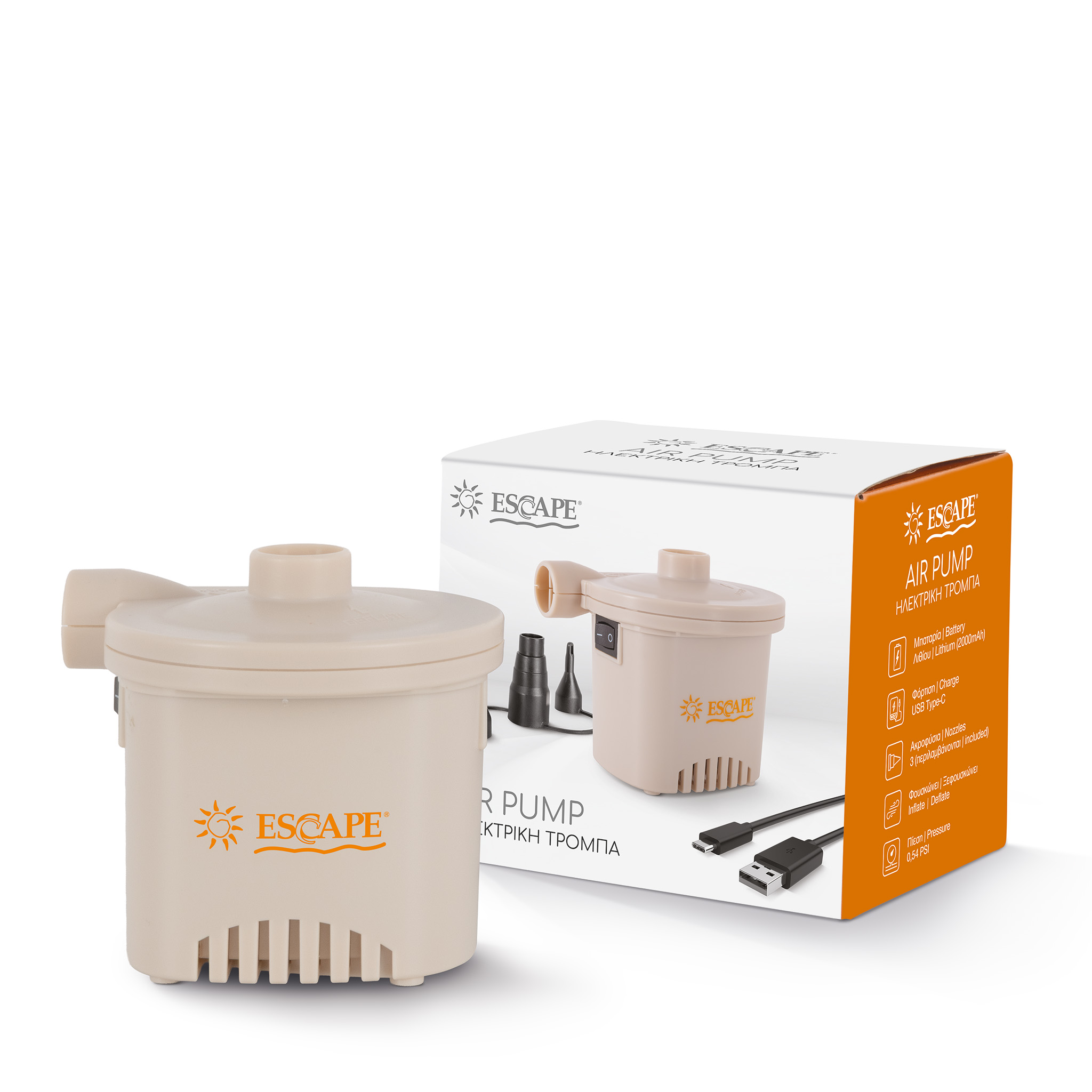 Η επαναφορτιζόμενη τρόμπα της ESCAPE είναι η απόλυτη λύση για όσους θέλουν πρακτικότητα και ευκολία σε κάθε τους δραστηριότητα. Με το μικρό της μέγεθος και τον ανθεκτικό σχεδιασμό της, συνοδεύει κάθε σου εξόρμηση, από το camping και τις διακοπές μέχρι τις καθημερινές ανάγκες στο σπίτι. Ιδανική επιλογή για χρήση στην παραλία για το φουσκώσεις στρώματα ή μπρατσάκια ή φουσκωτές μπαλίτσες.