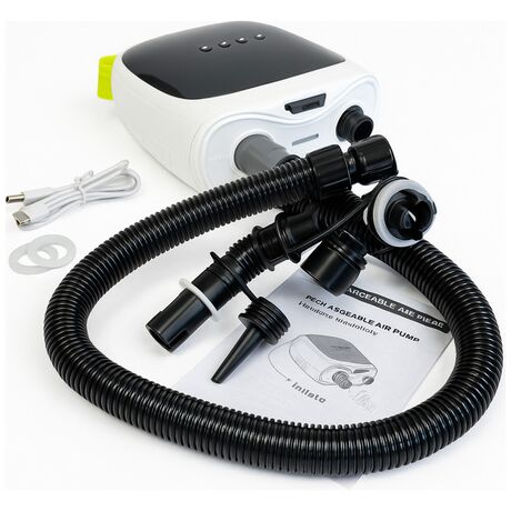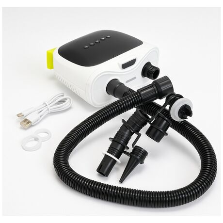 Η επαναφορτιζόμενη ηλεκτρική τρόμπα ARGO 10072 για SUP είναι η ιδανική λύση για γρήγορο και εύκολο φούσκωμα. Με μέγιστη πίεση 20psi, αυτή η τρόμπα διπλής ενέργειας διαθέτει ενσωματωμένη μπαταρία, επιτρέποντάς σας να φουσκώνετε οτιδήποτε με ακρίβεια. Η ψηφιακή ρύθμιση πίεσης με LCD οθόνη σας επιτρέπει να παρακολουθείτε την πίεση σε πραγματικό χρόνο, ενώ η αυτόματη απενεργοποίηση όταν φτάσει στην προεπιλεγμένη πίεση εξασφαλίζει ασφάλεια και ευκολία. Με ρυθμό ροής φουσκώματος 250 λίτρα/λεπτό και ξεφουσκώματος 70 λίτρα/λεπτό, η ARGO είναι γρήγορη και αποτελεσματική. Περιλαμβάνει έξι ακροφύσια για διαφορετικές ανάγκες και εύκαμπτο ενισχυμένο σωλήνα με βαλβίδα υψηλής πίεσης για αξιόπιστη χρήση. Είναι σημαντικό να μην την αφήνετε χωρίς επίβλεψη και να προσέχετε το σημείο τοποθέτησης κατά τη διάρκεια της λειτουργίας. Ιδανικά, τοποθετήστε την πάνω στο SUP κατά το φούσκωμα.