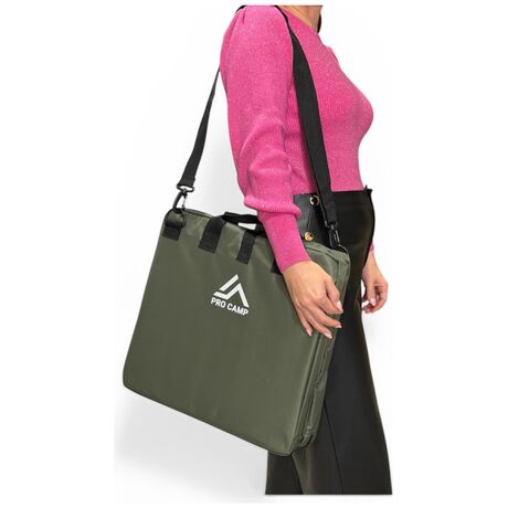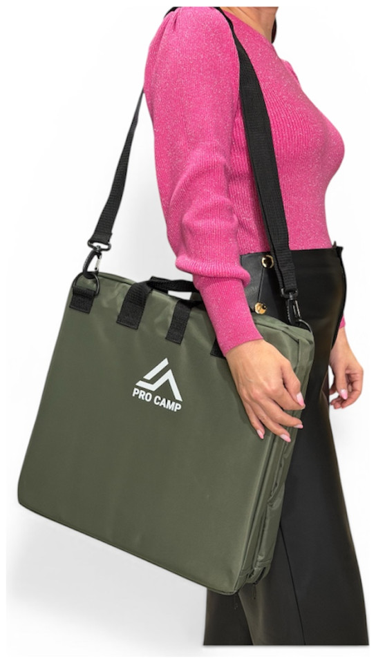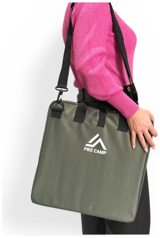 Κάθισμα Θεάτρου της ελληνικής εταιρείας Pro Camp με πλάτη για να μπορείτε εύκολα εκτός από το θέατρο να το χρησιμοποιείται στην παραλίας, στο Camping, στο ψάρεμα, στο γήπεδο και γενικότερα στις υπαίθριες δραστηριότητες σας. Καθίστε αναπαυτικά σε δύσκολα εδάφη με το κάθισμα Seat-Max έχοντας υποστήριξη στην πλάτη. Με ρυθμιζόμενο μήκος ιμάντων έτσι ώστε να έχετε την υποστήριξη της πλάτης που χρειάζεστε. Μπορείτε ανοίγοντας τα κουμπώματα να δημιουργήσετε και 2η θέση (θυσιάζοντας την στήριξη πλάτης) για τον/την φίλη ή τον/την σύντροφό σας. Το κάθισμα είναι κατασκευασμένο από υλικά αντοχής και με γνώμονα την εύκολη μεταφορά. Έτσι το ύφασμα είναι 600D, ύφανση ιδιαίτερα ανθεκτική στο χρόνο και τις κακουχίες, το παχύ διπλό μαξιλάρι θα σας προστατέψει από τις σκληρές επιφάνειες (πέτρες, τσιμέντο), ενώ το χαμηλό του βάρος θα σας επιτρέψει να το παίρνετε παντού μαζί σας. Για την μεγαλύτερη άνεση σας, έχουν χρησιμοποιηθεί 2 διαφορετικά αφρώδη, ένα μαλακό για μεγαλύτερη άνεση, και ένα σκληρό για αντοχή και συγκράτηση.