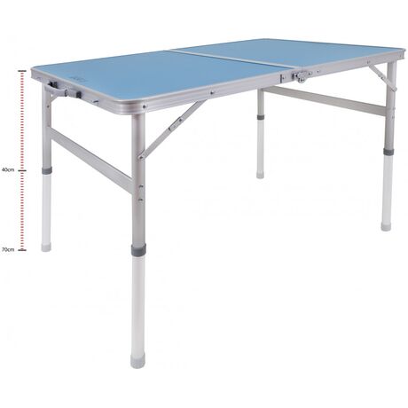 Το τραπέζι 15529 της Escape θα σας χαρίσει άνεση και εργονομία στο κάμπινγκ και τις υπαίθριες εξορμήσεις σας! Με σκελετό κατασκευασμένο από αλουμίνιο και τάβλα από MDF, καθίσταται εξαιρετικά ανθεκτικό έναντι στα χτυπήματα και τις πιέσεις. Το προϊόν μπορεί να ρυθμιστεί σε δύο θέσεις, για να το προσαρμόζετε στο ύψος που σας εξυπηρετεί καλύτερα! Χάρη στον πτυσσόμενο σχεδιασμό του, είναι κατασκευασμένο για να αναδιπλώνεται σε βαλίτσα και να μεταφέρεται οπουδήποτε με μεγάλη ευκολία! Διαθέτει διαστάσεις: 120 x 60 x 70 cm και είναι ανθεκτικό σε φορτίο έως 30 κιλά. Πρόκειται για μια εξαιρετικά σταθερή επιλογή, που θα σας προσφέρει εργονομία όπου και αν τη χρειάζεστε!