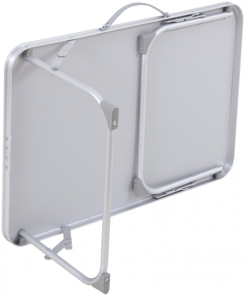 Το πτυσσόμενο τραπέζι 15528 της Escape αποτελεί μια χρηστική επιλογή, ιδανική για χρήση στο κάμπινγκ και το πικνίκ! Με σκελετό κατασκευασμένο από αλουμίνιο και με τάβλα από MDF, καθίσταται ανθεκτικό έναντι στην κρούση και την πίεση. Στο νέο βελτιωμένο μοντέλο του έχουν ενσωματωθεί πλαστικά τρίγωνα στις γωνίες των ποδιών, χαρακτηριστικό που σας εξασφαλίζει βέλτιστη σταθερότητα, για να εναποθέτετε χωρίς ανησυχία τα αντικείμενά σας! Το προϊόν διαθέτει αναδιπλούμενο σχεδιασμό για να μπορείτε να το μεταφέρετε οπουδήποτε μαζί σας με ευκολία και άνεση. Οι διαστάσεις του είναι: 56 x 34 x 23,5 cm. Πρόκειται για μια πρακτική επιλογή, που θα σας χαρίσει εργονομία και άνεση στις υπαίθριες αποδράσεις σας!