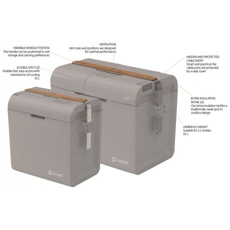Ένα έξυπνο ψυγείο με πολυτελές design, που λειτουργεί στα 12V με την μπαταρία του αυτοκινήτου και στα 230V με οικιακό ρεύμα, ιδανικό για το κάμπινγκ, την παραλία, την ύπαιθρο, το εξοχικό, το σκάφος ή το αυτοκίνητο! Το ECOlux 24L 12V/230V της Outwell κατεβάζει τη θερμοκρασία έως 18-25°C χαμηλότερα από τη θερμοκρασία περιβάλλοντος και την ανεβάζει κατά 50-60°C, όταν απενεργοποιηθεί η λειτουργία ψύξης! Με επιπλέον μόνωση PU στα τοιχώματα και το καπάκι για την μεγιστοποίηση της απόδοσής του, κινητήρα με πολύ καλό εξαερισμό για κατανάλωση λιγότερης ενέργειας, pull-up-and-over λαβή για εξοικονόμηση χώρου και σωστό κλείσιμο της συσκευής, εξαιρετική αντοχή στην παρατεταμένη χρήση, ευκολία στο καθάρισμα, μείωση θορύβου στα 34 dB, αυτόματο φως στο καπάκι, πιστοποίηση του Ινστιτούτου Ηλεκτρικής Ενέργειας Edison των Η.Π.Α (EEI), και προδιαγραφές που ακολουθούν την ευρωπαϊκή νομοθεσία ECO! Ένα αποδεδειγμένα αυτόνομο ψυγείο χωρίς πάγο, που εγγυάται την άψογη συντήρηση των αγαπημένων σας τροφών και ποτών παντού! Η εξαιρετική επιτυχία των τεχνικά προηγμένων κιβωτίων ECOcool εξοικονόμησης ενέργειας μας οδήγησε να επεκτείνουμε τη γκάμα με τα νέα σχέδια ECOLux υψηλής τεχνολογίας που προσφέρουν εκπληκτική καλή εμφάνιση σε καθαρό λευκό σώμα που συμπληρώνεται από ανοξείδωτο ατσάλι και λαβή από μπαμπού με το μπόνους USB θύρα και ένα LED στο καπάκι.