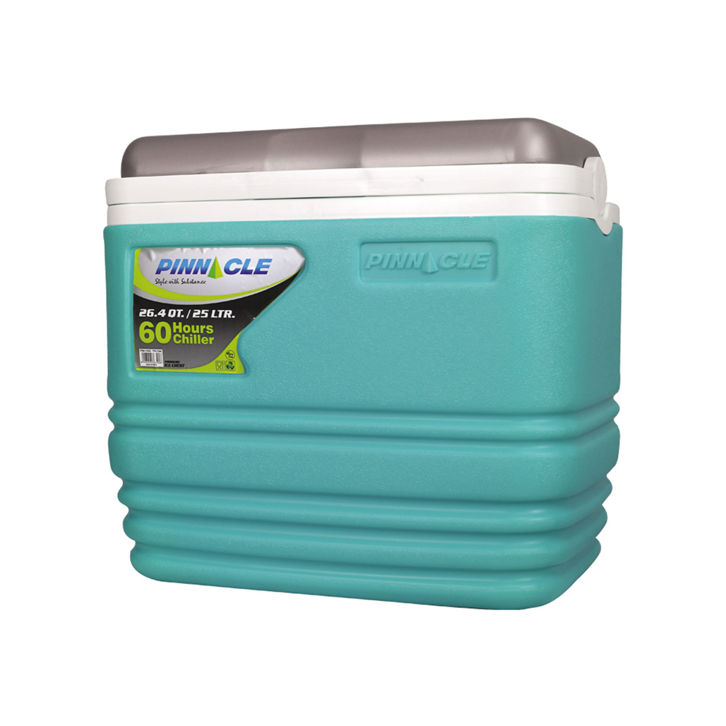 Ψυγείο ισοθερμικό 25 λίτρων κατάλληλο για τις εξορμήσεις σας στην παραλία και την εξοχή, στο κάμπινγκ και το ψάρεμα! Είναι κατασκευασμένο από υλικό HPDE, υλικό γνωστό για τις αντοχές του στις υψηλές θερμοκρασίες και τη σκληρότητα του. Διαθέτει ειδική μόνωση στο σώμα αλλά και στο καπάκι από PU (πολυουρεθάνη), ένα υλικό ευρέως γνωστό για τις μονωτικές του ιδιότητες. Μπορείτε με τη χρήση πάγου να παγώσετε και να διατηρήσετε τα αναψυκτικά/ποτά σας για πολλές ώρες, ενώ με την χρήση παγοκύστης μπορείτε να διατηρήσετε τη θερμοκρασία εσωτερικά, προκειμένου να μεταφέρετε ευαίσθητα τρόφιμα όπως γάλα ή κρέας. Διαθέτει λαβή για εύκολη μεταφορά. Διατηρεί την ψύξη για 60 ώρες.