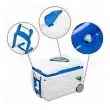 Ψυγείο ισοθερμικό 45 λίτρων κατάλληλο για τις εξορμήσεις σας στην παραλία και την εξοχή, στο κάμπινγκ και το ψάρεμα! Είναι κατασκευασμένο από υλικό HPDE, υλικό γνωστό για τις αντοχές του στις υψηλές θερμοκρασίες και τη σκληρότητα του. Διαθέτει ειδική μόνωση στο σώμα αλλά και στο καπάκι από PU (πολυουρεθάνη), ένα υλικό ευρέως γνωστό για τις μονωτικές του ιδιότητες. Με επίστρωση UV που προστατεύει το ψυγείο από την φθορά λόγω έκθεσης στον ήλιο, μπορείτε με τη χρήση πάγου να παγώσετε και να διατηρήσετε τα αναψυκτικά/ποτά σας για πολλές ώρες, ενώ με την χρήση παγοκύστης μπορείτε να διατηρήσετε τη θερμοκρασία εσωτερικά, προκειμένου να μεταφέρετε ευαίσθητα τρόφιμα όπως γάλα ή κρέας. Διαθέτει επίσης μεγάλη, μαλακή λαβή και ροδάκια για εύκολη κύλιση. Διατηρεί την ψύξη του για πάνω από 72 ώρες.