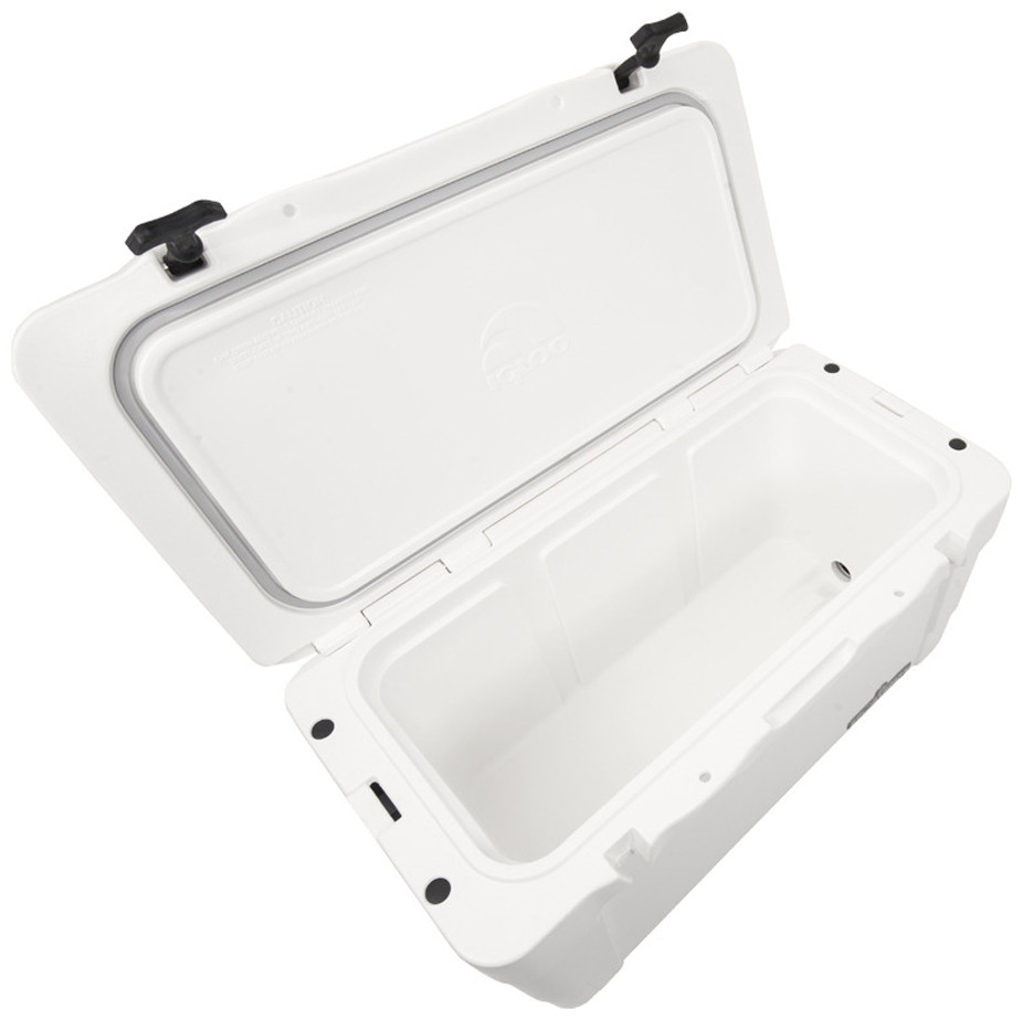 Φορητό ψυγείο από την μοναδική εταιρεία Igloo χωρητικότητας 66lt. Ψυγείο εξαιρετικά μεγάλης αντοχής (πρακτικά άθραυστη κατασκευή roto-molding) με ανασηκώμενη επιφάνεια εργασίας στο καπάκι και μεντεσέ αλουμινίου. Διαθέτει χάρακα μέτρησης μήκους ψαριών / θηραμάτων, υποδοχή λουκέτου Pro-Tek για επιπλέον ασφάλεια σε σύγκριση με απλά λουκέτα, υποδοχή πρόσδεσης στο έδαφος για απόλυτη σταθερότητα. Ελαστικά κλείστρα T-Grip ανθεκτικά και ασφαλή. Έξτρα χωνευτές χειρολαβές για εύκολο φόρτωμα-ξεφόρτωμα από το όχημα και χειρολαβές StableGrip. Σύστημα αποστράγγισης RapidFlo για γρήγορο άδειασμα και καθαρισμό και βάση που δεν μαρκάρει το δάπεδο και κρατά το ψυγείο σταθερό. Η τεχνολογία Cool Riser που χρησιμοποιείται για την κατασκευή του ελαχιστοποιεί την απώλεια ψύξης. Απαραίτητο εργαλείο για κυνηγούς, ψαράδες και άλλους ανθρώπους της υπαίθριας δράσης, αλλά είναι εξίσου ιδανικό για το σπίτι, το camping, το πικ νικ και άλλες δραστηριότητες.