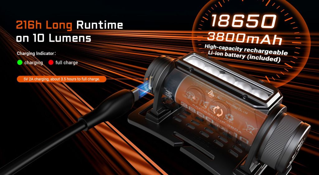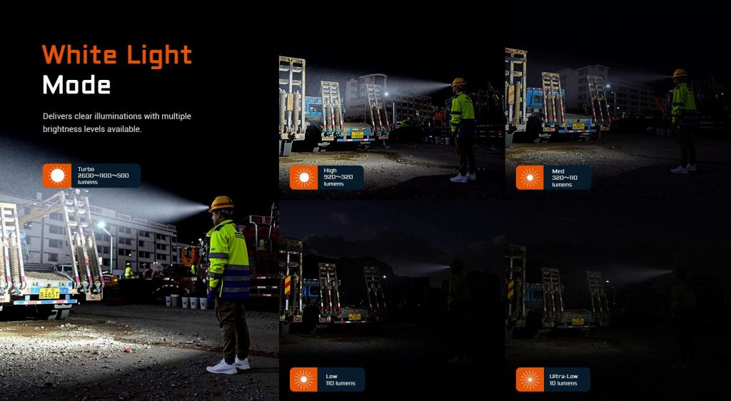 -High: 920 → 320 lumens — 20 λεπτά → 6 ώρες