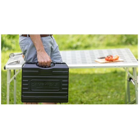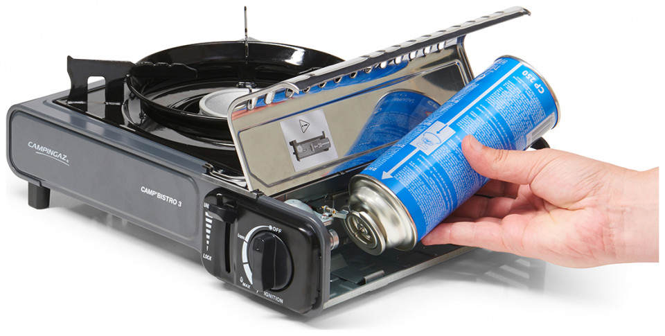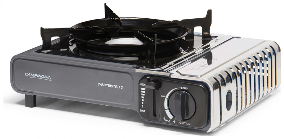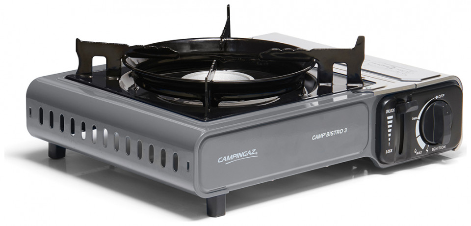Φορητή Εστία Υγραερίου Camp Bistro 3 της Campingaz με μικρές διαστάσεις και θήκη μεταφοράς για να συντροφεύει με άνεση σε όλες τις υπαίθριες δραστηριότητες σας. Διαθέτει 2 ενσωματωμένα συστήματα ασφαλείας για προστασία καθόλη την διάρκεια χρήσης, και αναβαθμισμένη υποστήριξη τηγανιού εξασφαλίζοντας σας σταθερότητα και ασφάλεια. Χάρη στην πλαστική θήκη μεταφοράς μπορείτε άνετα να μεταφέρετε να μεταφέρετε την εστία παντού ή να την αποθηκεύσετε μαζί με τον υπόλοιπο εξοπλισμό σας χωρίς να δεσμεύει χώρο.