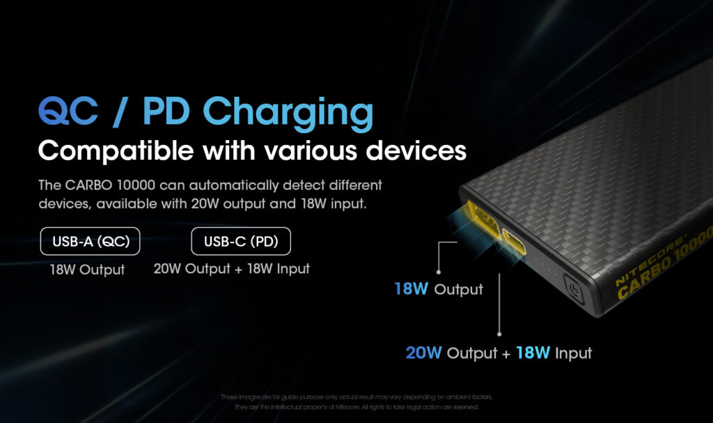 Το CARBO 10000 μπορεί να αναγνωρίσει αυτόματα διαφορετικές συσκευές, διαθέσιμο για έξοδο 20w και είσοδο 18w
