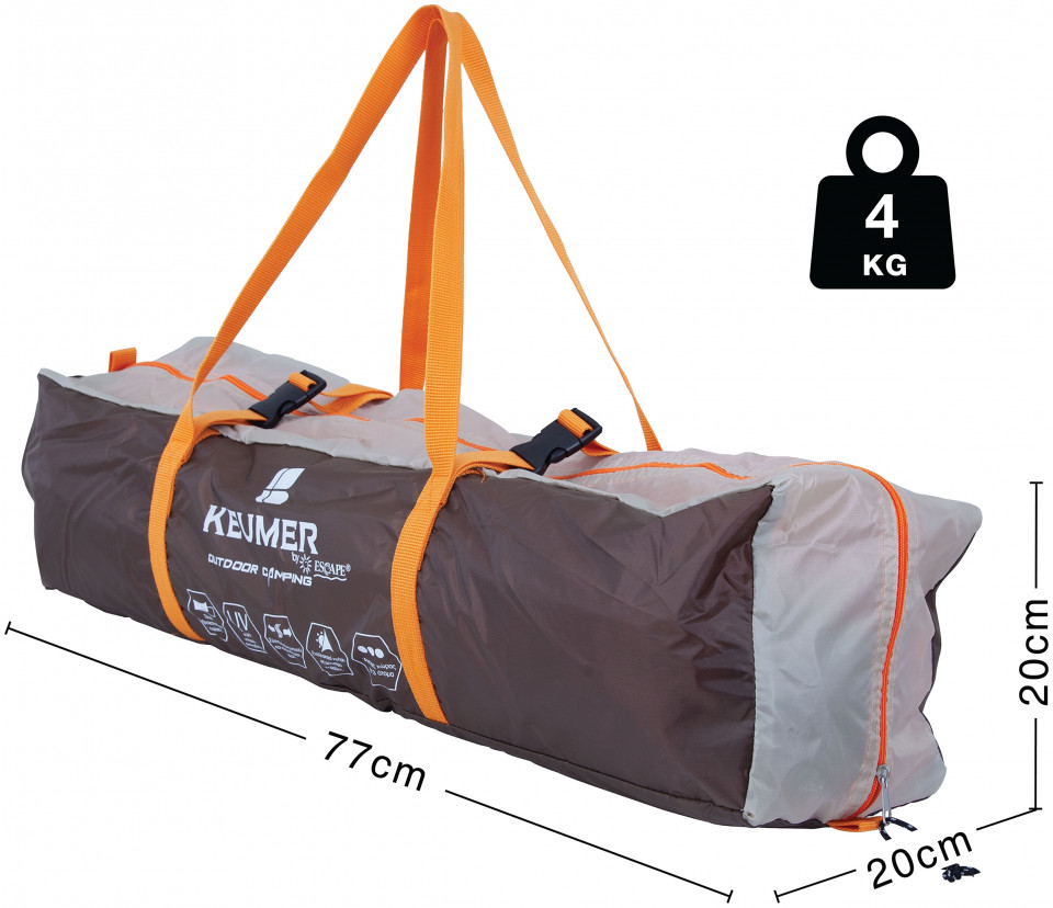 Μια pop-up σκηνή της Escape με μοντέρνο και πρωτότυπο σχεδιασμό και ωραίους συνδυασμούς χρωμάτων. Σας εγγυάται έναν ασφαλή, άνετο και ξεκούραστο ύπνο προσφέροντας ευελιξία κινήσεων με δυο πόρτες εισόδου (μια εμπρός και μια πίσω) και δυο παράθυρα που εξασφαλίζουν τον βέλτιστο εξαερισμό στη σκηνή σας. Με διαστάσεις (60+210+60) x 210 x 130 cm και μέγιστο ύψος στο εσωτερικό 130 cm προσφέρει τον απαιτούμενο χώρο για να μπορεί να φιλοξενήσει άνετα 3 άτομα. Διαθέτει επένδυση PU για έξτρα αντηλιακή προστασία, αδιαβροχοποίηση 1.500 χιλιοστών, διπλή οροφή στη σκηνή για να εξασφαλίζει την στεγανότητα του χώρου, κατασκευασμένη από πολυεστέρα εξωτερικά με 150 T και εσωτερικά 170 Τ πορώδες που αναπνέει 110gr PE για την απόλυτη αρμονία καθαρού αέρα, καθ' όλη τη διάρκεια της διαμονής σας. Διαθέτει κουνουπιέρα, η οποία σας δίνει τη δυνατότητα να έχετε καθαρό αέρα συνέχεια και δεν επιτρέπει την είσοδο στα ενοχλητικά έντομα και τα ζωύφια. Επιπλέον, έχει χρησιμοποιηθεί ειδική ταινία αδιαβροχοποίησης στις ενώσεις για μεγαλύτερη προστασία του εσωτερικού από την υγρασία, καθώς δεν επιτρέπει στο νερό να εισχωρήσει στη σκηνή. Είναι η ιδανική επιλογή για παραθαλάσσιο ή ορεινό κάμπινγκ με την οικογένεια και τους φίλους σας. Είναι σίγουρο πως θα σας λύσει τα χέρια με τον αυτόματο τρόπο στησίματός της και μπορεί να χρησιμοποιηθεί και από παιδιά μικρής ηλικίας στην κατασκήνωση ή τον προσκοπισμό. Μια σκηνή που δεν πρέπει να λείπει από τον εξοπλισμό σας, καθώς σας προσφέρει την λειτουργικότητα και την άνεση που είναι απαραίτητα για την διαμονή σας στην ύπαιθρο, σε συνδυασμό με μια άκρως προσοδοφόρα τιμή!