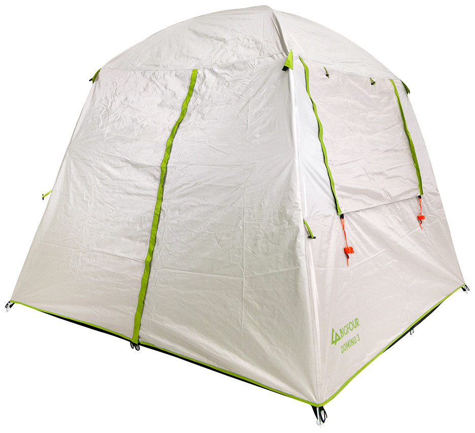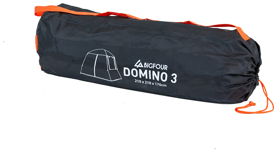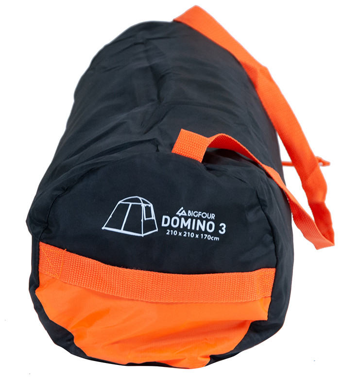 Σκηνή 3 ατόμων Domino από την εταιρεία BigFour με αντιηλιακή προστασία UV+30, ιδανική για το κάμπινγκ και τις υπαίθριες εξορμήσεις! Με διαστάσεις 210χ210χ170cm είναι αρκετά βολική και ευρύχωρη για να φιλοξενήσει εσάς και τα αγαπημένα σας πρόσωπα. Εξωτερικά είναι κατασκευασμένη από 190T πολυεστέρα με επίστρωση silver και PU coated και εσωτερικά από 190T πολυεστέρα διαπνέον, διαθέτοντας και κουνουπιέρα. Το μαύρο εσωτερικό ύφασμα, αλλά και η εξωτερική silver επίστρωση αφήνουν λιγότερο φως να περάσει στο εσωτερικό της σκηνής, εξασφαλίζοντας έτσι περισσότερη ώρα ύπνου το πρωί! Η Domino 3 είναι εξοπλισμένη με 2 πόρτες και 2 παράθυρα τα οποία φέρουν κουνουπιέρες, ενώ εσωτερικά διαθέτει και πρακτικές τσέπες για να αποθηκεύετε τα προσωπικά σας αντικείμενα. Ο σκελετός της σκηνής είναι κατασκευασμένος από fiberglass 2x8,5mm με γωνίες, αρκετά ανθεκτικός και στιβαρός! Απολαύστε ξέγνοιαστες στιγμές στο κάμπινγκ, την εξοχή ή το βουνό με την σκηνή Domino 3 από την BigFour!