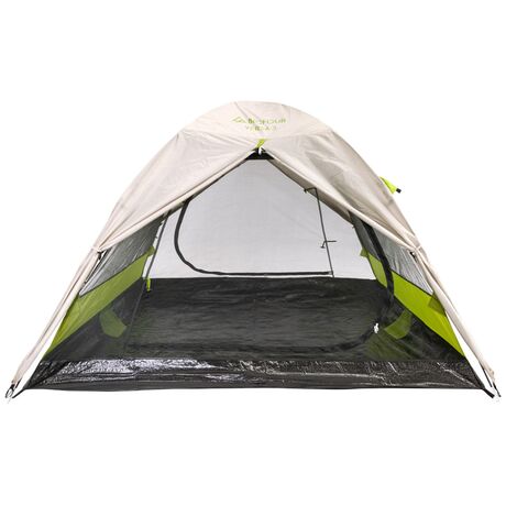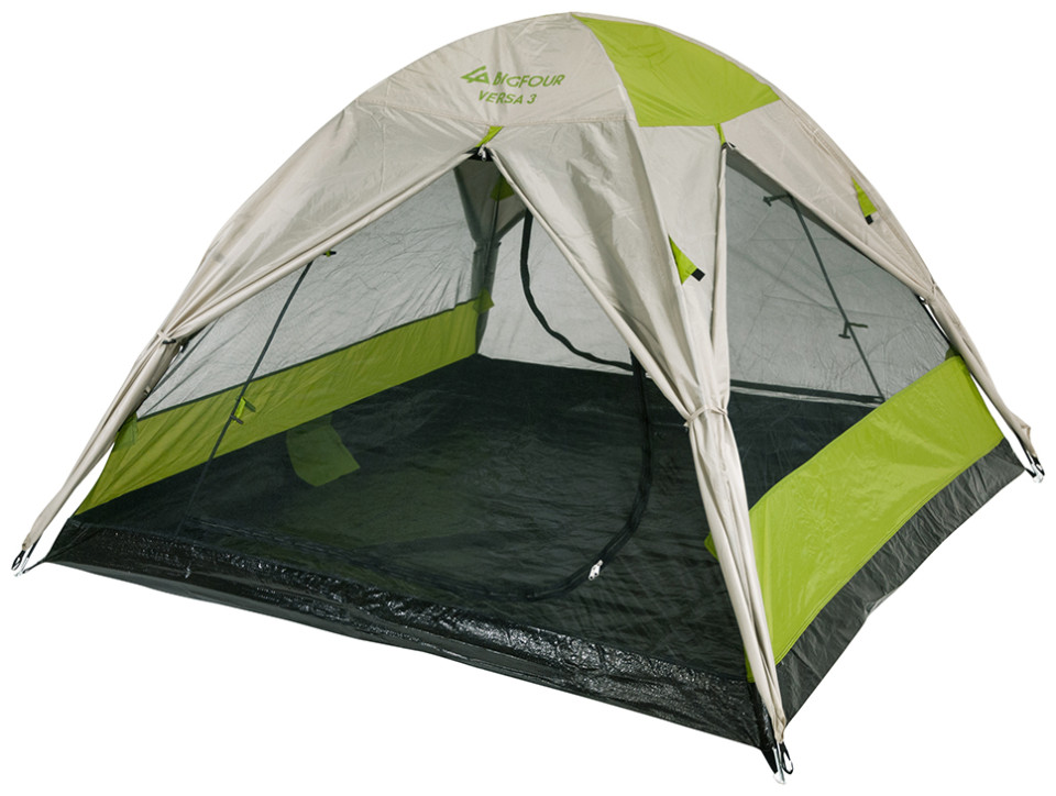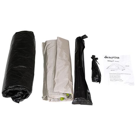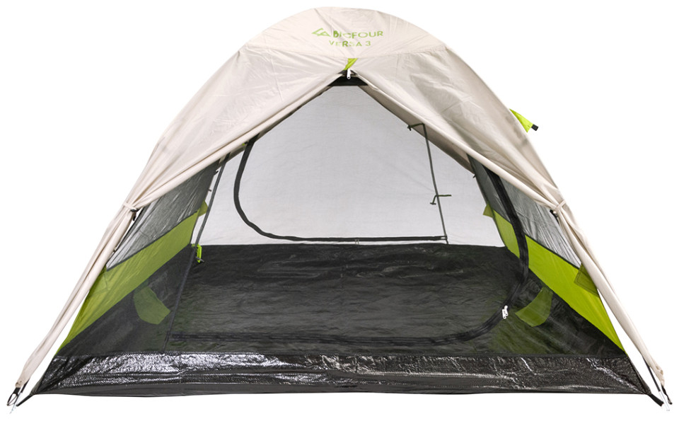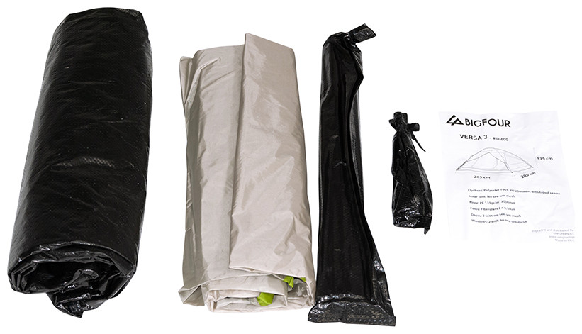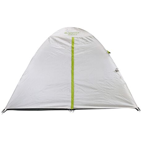 Σκηνή 3 ατόμων Versa από την εταιρεία BigFour ασημί με πράσινες λεπτομέρειες, ιδανική για το κάμπινγκ και όλες τις υπαίθριες αποδράσεις! Με διαστάσεις 205χ205χ135cm είναι κατάλληλη να φιλοξενήσει εσάς και τα αγαπημένα σας πρόσωπα με άνεση! Εξωτερικά είναι κατασκευασμένη από 190T πολυεστέρα και PU Coated και εσωτερικά φέρει κουνουπιέρα. Η Versa 3 είναι εξοπλισμένη με 2 πόρτες και 2 παράθυρα, καλυμμένα από κουνουπιέρα και κλείσιμο με φερμουάρ, ενώ το πάτωμα της είναι από PE 135gr/m2 με 2.000mm αδιαβροχοποίηση. Ο σκελετός της σκηνής είναι κατασκευασμένος από fiberglass 2x8,5mm, αρκετά ανθεκτικός και στιβαρός! Εσωτερικά του δωματίου θα βρείτε πρακτικές τσέπες, για να αποθηκεύετε τα προσωπικά σας αντικείμενα! Απολαύστε ξέγνοιαστες στιγμές στο κάμπινγκ, την εξοχή ή το βουνό με την σκηνή Versa 3 από την BigFour!