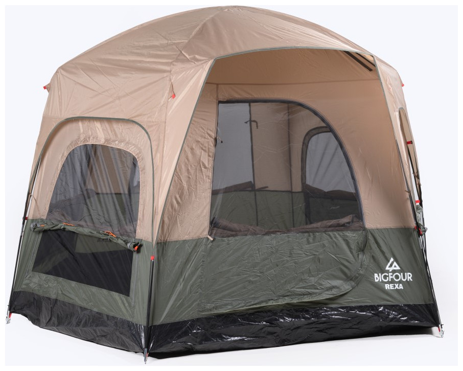 Η σκηνή 4 ατόμων Bigfour Rexa 4 είναι η ιδανική επιλογή για τις υπαίθριες περιπέτειές σας. Με χωρητικότητα 4-5 ατόμων, προσφέρει άνεση και ευρυχωρία, ιδανική για οικογένειες ή παρέες φίλων. Οι διαστάσεις της είναι 320x260x190cm, παρέχοντας αρκετό χώρο για να κινηθείτε ελεύθερα. Κατασκευασμένη από 190T Polyester PU coated, η σκηνή διαθέτει αδιαβροχοποίηση 2000mm, εξασφαλίζοντας ότι θα παραμείνετε στεγνοί ακόμα και σε βροχερές συνθήκες. Το εσωτερικό υλικό 185T Polyester PA coated 300mm είναι διαπνέον, προσφέροντας άνεση και καλή κυκλοφορία αέρα.