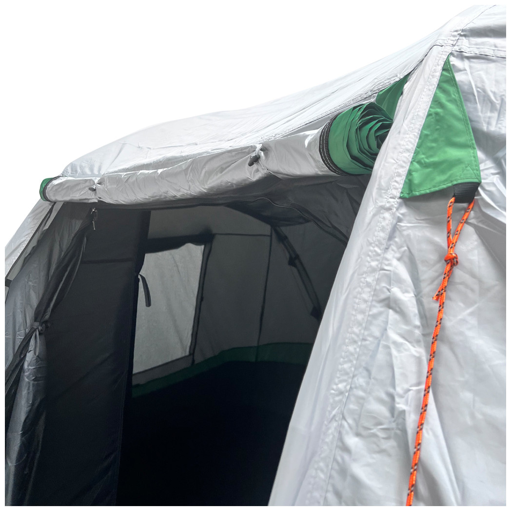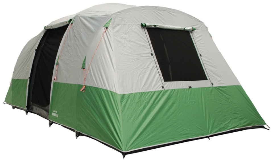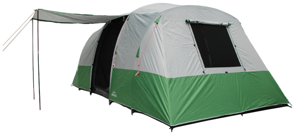 Εξαιρετικής ποιότητας σκηνή camping τούνελ της εταιρίας Bigfour σε πράσινο χρώμα με τρία δωμάτια, κατάλληλη για τις εξορμήσεις σας στην ύπαιθρο. Διαθέτει 2000mm βαθμό αδιαβροχοποίησης και μπορεί να ανταπεξέλθει σε μια απλή βροχή, κάνοντάς την ιδανική για χρήση το καλοκαίρι. Έχει διπλό πανί για καλύτερο εξαερισμό και αποφυγή δημιουργίας υδρατμών. Η σκηνή περιέχει 2 ξεχωριστά πανιά, που τοποθετούνται το ένα επάνω από το άλλο στην οροφή της ή το πάνω μέρος της. Το πρώτο πανί διαθέτει αδιαβροχοποίηση, ενώ το δεύτερο είναι ένα πανί που επιτρέπει τη διέλευση του αέρα και προσφέρει καλύτερο αερισμό στην σκηνή. Ο σκελετός της σκηνής είναι από fiberglass είναι μια συνηθισμένη επιλογή για την κατασκευή σκηνών camping. Πρόκειται για ένα ελαφρύ και ανθεκτικό υλικό, κατασκευασμένο από ίνες fiberglass που επικαλύπτονται με πολυεστέρα για να προστατεύονται από το νερό και την υγρασία, παρατείνοντας έτσι την διάρκεια ζωής της σκηνής σας. Η σκηνή BigFour Imperial αποτελεί ιδανική επιλογή για κάθε είδους υπαίθρια δραστηριότητα παρέα με τους φίλους ή την οικογένεια σας.