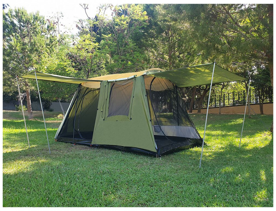 Οικογενειακή σκηνή για camping, σχεδιασμένη για να χωράει έως 6 άτομα, η CALUSA παρέχει δύο υπνοδωμάτια ή ένα υπνοδωμάτιο και έναν χώρο υποδοχής για τις μικρότερες οικογένειες που χρειάζονται άνεση και επιπλέον χώρο για τον εξοπλισμό τους. Γεμάτη με χαρακτηριστικά που ικανοποιούν τις οικογένειες, αυτή η σκηνή σε σχήμα τούνελ διαθέτει 4 πόρτες και 2 μεγάλα παράθυρα με σίτα που επιτρέπουν αρκετό φως να μπει στην σκηνή αφήνοντας έξω τα έντομα. Το πλήρως ραμμένο δάπεδο κρατάει έξω το νερό και τα ζωύφια, οι θήκες για τα μικροαντικείμενα θα σας βοηθήσουν στην οργάνωση, ενώ οι υποδοχές για φανάρια θα διασφαλίσουν ότι τα δωμάτια θα παραμείνουν καλά φωτισμένα και φιλόξενα. Αναζητάτε μια νέα στέγη για τις οικογενειακές σας περιπέτειες; Μην ψάχνετε τίποτα άλλο πέρα από τη σκηνή CALUSA της Salty Tribe.