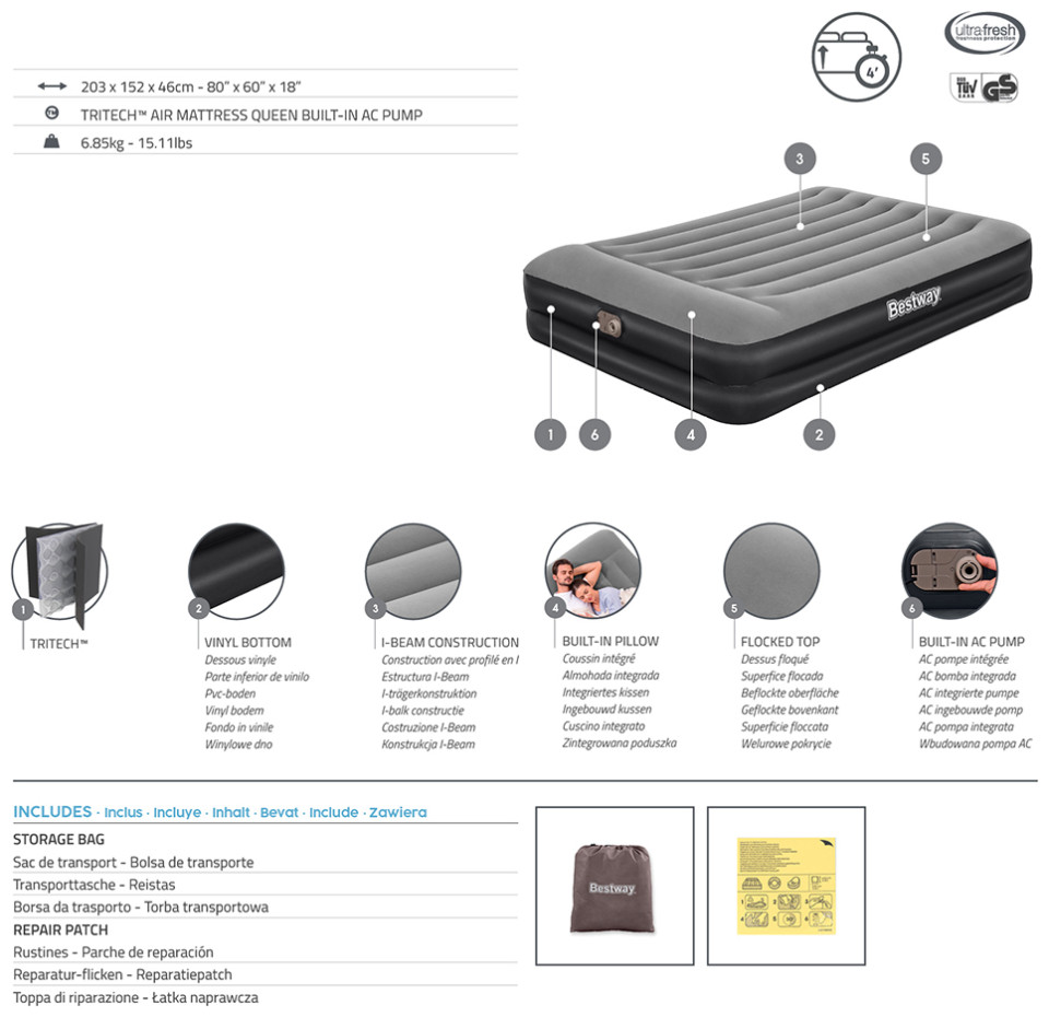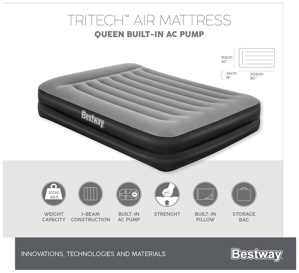 Φουσκωτό Στρώμα Ύπνου 203x152x46cm Premium Queen Bestway Κωδ. 15322