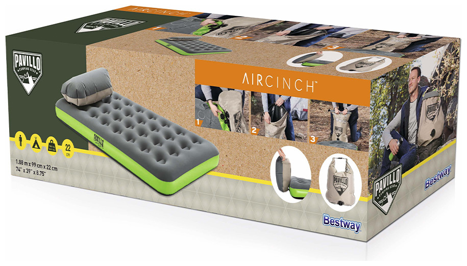 Στρώμα Pavillo Roll & Relaxed Airbed Twin 1.88 x 0.99 x 0.22 cm Κωδ. 15366 Γκρί/Πράσινο