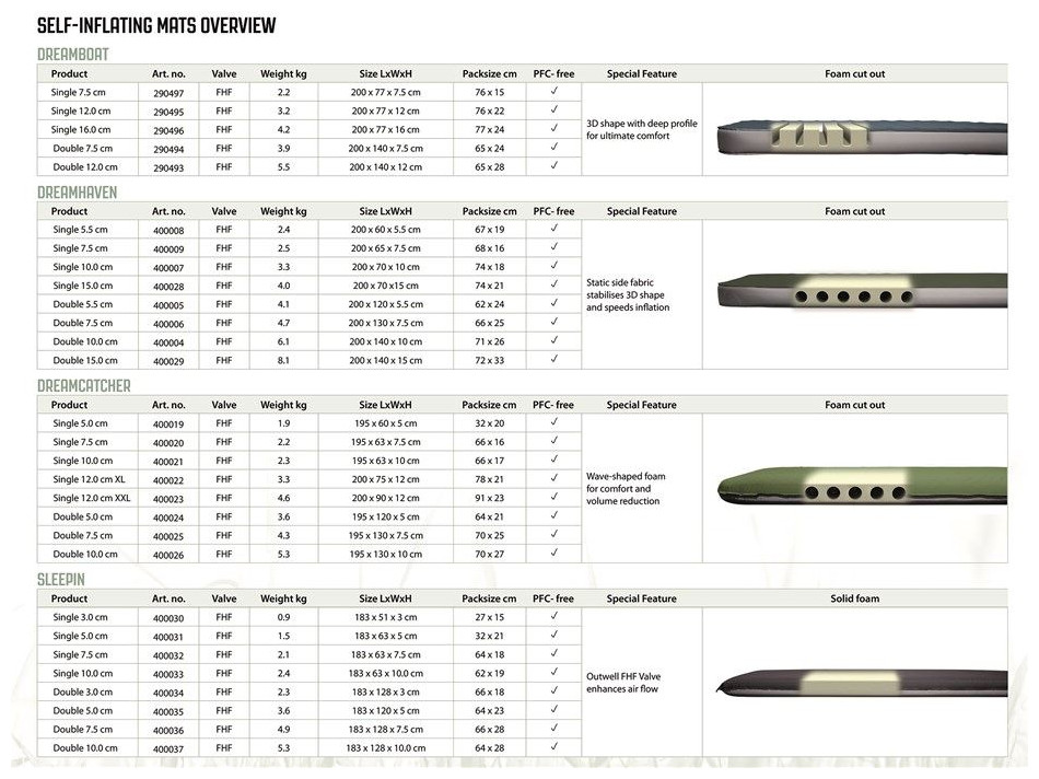 Αυτοφούσκωτο Στρώμα Dreamboat Selfinflating Mat Διπλό 7.5cm Outwell