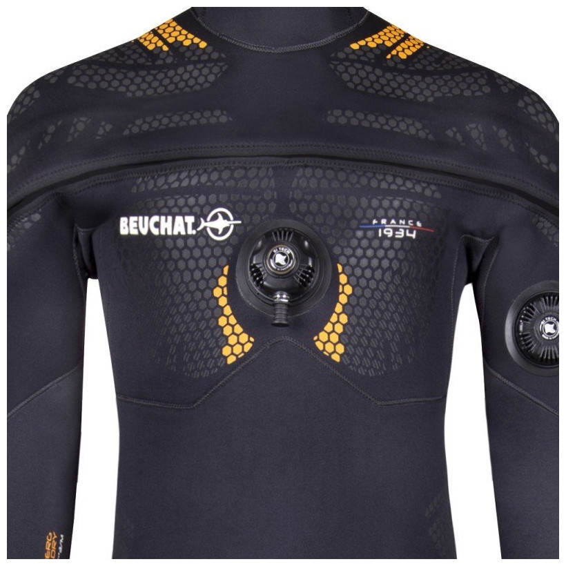 Ανδρική στολή με την υπογραφή της κορυφαίας εταιρείας Beuchat, ιδανική για κατάδυση και κολύμβηση με αναπνευστήρα! Είναι κατασκευασμένη από υπερελαστικό εύκαμπτο νεοπρέν με πάχος 4mm και μαλακό Stretch Elaskin X 2.2 στις αρθρώσεις των ώμων για περισσότερη ελαστικότητα και ευκολία στην κίνηση, καθώς και στο στήθος για πιο άνετη αναπνοή! Επιπλέον, η καινοτόμος τοποθέτηση του φερμουάρ προσφέρει άνεση και μεγάλη ελευθερία κινήσεων προς τα εμπρός, έτσι ώστε το κουστούμι να μπορεί να φορεθεί χωρίς βοήθεια.