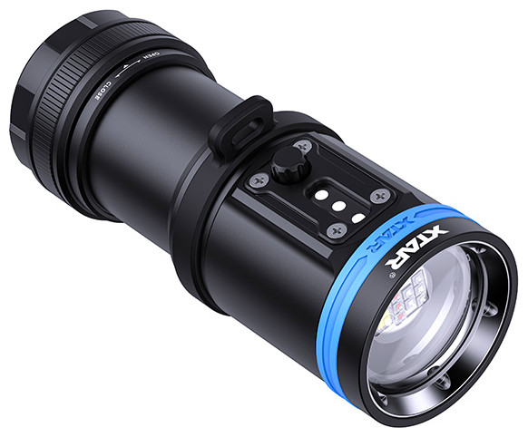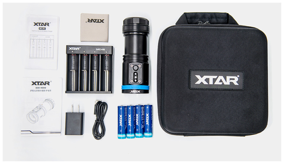 Φακός D30 Full Set της XTAR ένας καταδυτικός φακός με μοναδικό σχεδιασμό για λήψη υποβρύχιων φωτογραφιών και βίντεο με μέγιστη φωτεινότητα 4000Lumens. Με δυνατότητα να παράγει μπλε φως για να προσελκύσει υποβρύχια πλάσματα, κόκκινο φως το οποίο σας βοηθά στην εξερεύνησή του βυθού, και υπεριώδες φως για να επιτρέπει την λήψη βίντεο και φωτογραφιών του υποθαλάσσιου κόσμου. Με ένδειξη μπαταρίας για να σας εξασφαλίζει μια ασφαλή διαδρομή. Όταν η χωρητικότητα της μπαταρίας μειώνεται στο 66% και άνω παραμένουν ενεργοποιημένες τρείς ενδείξεις. Όταν η αποφόρτιση κυμαίνεται μεταξύ 33% και 66%, δυο ενδείξεις παραμένουν αναμμένες, όταν κυμαίνεται μεταξύ 5% και 33% ανάβει μόνο μια ένδειξη. Μια ένδειξη θα αναβοσβήνει όταν η μπαταρία αποφορτιστεί κάτω από 5%, σε αυτή την περίπτωση πρέπει να αντικατασταθεί το συντομότερο δυνατό, για να μην επηρεαστεί η κανονική χρήση λόγω υπεραποφόρτισης. Μόλις η μπαταρία αποφορτιστεί κάτω από το 5% το φως κατάδυσης θα εισέλθει αυτόματα σε λειτουργία σεληνόφωτου με εξαιρετικά χαμηλή φωτεινότητα, αποφεύγοντας την ξαφνική έλλειψη ισχύος. Σε αυτή την λειτουργία, δεν επιτρέπεται η αλλαγή της φωτεινότητας. Ένα μονο πάτημα απενεργοποιεί το φως. Πατώντας τον διακόπτη για 3 δευτερόλεπτα όταν το λευκό φως είναι απενεργοποιημένο ενεργοποιείτε η λειτουργία κλειδώματος. Το λευκό φως θα αναβοσβήσει τρείς φορές και μετά θα τεθεί σε λειτουργία κλειδώματος. Σε αυτή την λειτουργία πίεσης και ο περιστροφικός διακόπτης δεν μπορούν να χρησιμοποιηθούν. Αυτό γίνεται για να αποφευχθεί η κατά λάθος ενεργοποίηση των φώτων κατά την μεταφορά του. Μπορείτε να βγείτε από την λειτουργία κλειδώματος κρατώντας πατημένο το διακόπτη για 3 δευτερόλεπτα και στην συνέχεια ανάψτε το φως. Το πρωτεύον λευκό φως και το βοηθητικό φως πολλαπλών χρωμάτων του D30 διαχειρίζονται ανεξάρτητα από διαφορετικούς διακόπτες. Ο διακόπτης τύπου πίεσης που ελέγχει τα λευκά φώτα βρίσκεται στο πάνω μέρος του σκελετού και μπορείτε να επιλέξετε λειτουργία με κάθε διαδοχικό πάτημα απενεργοποιημένο, δυνατό, μεσαίο, χαμηλο και απενεργοποιημένο. Υπάρχουν έως και 15 είδη τρόπων φωτισμού ενώνοντας τυχαία τα δυο φώτα. Λόγω του συστήματος προστασίας κατά της πολικότητας όταν οι μπαταρίες τοποθετηθούν αντίστροφα δεν θα γίνει βραχυκύκλωμα. Διαθέτει επίσης μια ενσωματωμένη μονάδα ελέγχου θερμοκρασίας, η οποία λειτουργεί με αυτόματη ρύθμιση της φωτεινότητας. Αυτή η λειτουργία βοηθά πολύ όταν ένα φως κατάδυσης έχει πολύ υψηλή θερμοκρασία μέσα. Μετά από κάθε χρήση πλύνετε τον καταδυτικό φακό με καθαρό νερό. Πατήστε επανειλημμένα το διακόπτη ενώ πλένεται για να βεβαιωθείτε ότι αποστράγγισε το θαλασσινό νερό μέσα από τον διακόπτη. Στην συνέχεια μπορείτε να τον αποθηκεύσετε με ασφάλεια. Το αδιάβροχο λαστιχάκι o-ring στον σκελετό πρέπει να παραμένει λαδωμένο για να διασφαλιστεί η κανονική χρήση του καταδυτικού φακού. Μην σκουπίζετε εντελώς το λιπαντικό και αμέσως συμπληρώστε το όταν τελειώσει. Απολαύστε με απόλυτη ασφάλεια και άνεση το αγαπημένο σας χόμπι χάρη στην ποιότητα και αξιοπιστία της εταιρείας XTAR.