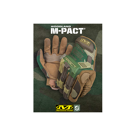 Τα γάντια M-Pact Woodland Camo έχουν σχεδιαστεί να προστατεύουν και να βοηθούν στην παραλλαγή στρατιωτικών και ειδικών δυνάμεων στις ορεινές περιοχές με ποικιλία βλάστησης. Το θερμοπλαστικό καουτσούκ (TPR) με ικανότητα απορρόφησης κραδασμών παρέχει ευέλικτη προστασία στο πεδίο ενάντια στους τραυματισμούς και τις εκδορές. Η κατοχυρωμένη με πατέντα Impact Guard® απελευθερώνει τον δείκτη για την ομαλή είσοδό του στον υποφυλακτήρα σκανδάλης και προσφέρει ελευθερία στην κίνηση κατά την διάρκεια σκληρής εργασίας. Η εσωτερική ενίσχυση διπλής στρώσης στα ακροδάχτυλα προσφέρει βελτιωμένη αντοχή στον αντίχειρα και τον δείκτη. Το επίθεμα XRD® στην παλάμη απορροφά τους κραδασμούς και τις δονήσεις για να μειώσει την κούραση στο χέρι κατά την πλήρη εμπλοκή.