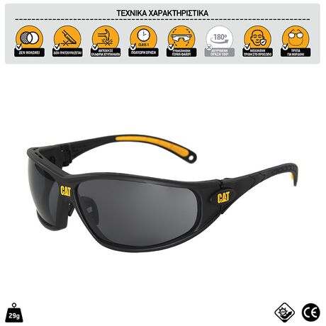 Γυαλιά προστασίας DOZER από την Caterpillar με κωδικό 104, ιδανικά για επαγγελματική χρήση. Διαθέτουν φακό περιμετρικού τύπου 180 μοιρών με αντι-θαμβωτική επίστρωση, εξασφαλίζοντας καθαρή ορατότητα σε κάθε συνθήκη. Η υψηλής αντοχής επίστρωση των φακών προστατεύει από γδαρσίματα, ενώ το πολυκαρβονικό υλικό 2.2mm έχει δοκιμαστεί για να αντέχει σε πρόσκρουση. Ο κρυσταλλικός φακός οπτικής κατηγορίας 1 επιτρέπει τη συνεχή χρήση χωρίς ενοχλήσεις. Ο σκελετός διαθέτει συνθετικά άκρα υψηλής αντοχής PVC και μαλακή γέφυρα στη μύτη για επιπλέον άνεση. Με ρυθμιζόμενη κλίση θόλου σε 4 θέσεις, αυτά τα γυαλιά είναι σχεδιασμένα για να ανταποκρίνονται στις απαιτήσεις κάθε εργοταξίου ή καθημερινής χρήσης. Προστατεύουν τα μάτια σας σε επικίνδυνες συνθήκες εργασίας, προσφέροντας εξαιρετική ποιότητα και ασφάλεια με στυλ. Οι πολυκαρβουνικοί φακοί απορροφούν την ακτινοβολία UV και δεν θολώνουν, ενώ είναι ανθεκτικοί στις γρατσουνιές. Με καουτσούκ στα σημεία επαφής για άνετη εφαρμογή και λογότυπο CAT στο πλάι, είναι η ιδανική επιλογή για επαγγελματίες.