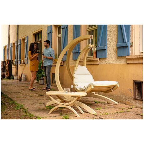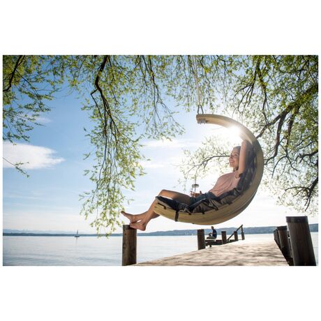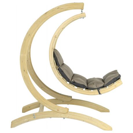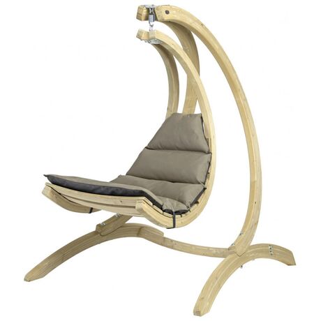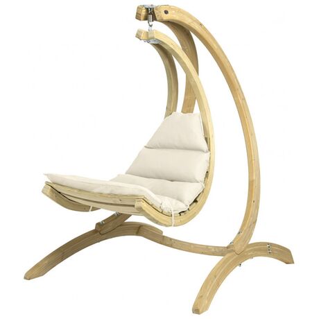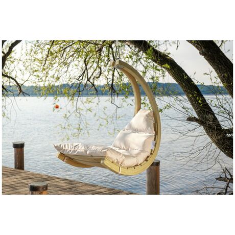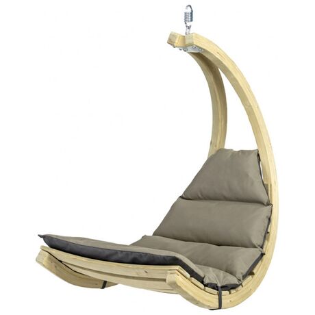 Είναι κατασκευασμένο από, ανθεκτικό στις καιρικές συνθήκες, ξύλο ερυθρελάτης. Η υψηλής ποιότητας πολυστρωματική κόλλα καθιστά το Swing Lounger ιδιαίτερα σταθερό και ασφαλή. Το εξαιρετικά παχύ και αδιάβροχο στρώμα είναι η εγγύησή σας για τέλεια χαλάρωση. Φοράει ένα ανθεκτικό κάλυμμα Agora (είναι τόσο μαλακό όσο το βαμβάκι) πάνω από το στρώμα όπου είναι ανθεκτικός στις κακές καιρικές συνθήκες καθώς και στις ακτίνες του ηλίου. Είναι επίσης ανθεκτικό σε μούχλα, μη ευαίσθητο στη βρωμιά και εύκολο στον καθαρισμό. Το Swing Lounger μπορείτε να την τοποθετήσετε σε ένα δέντρο, σε μία πέργκολα στο μπαλκόνι σας, να το συνδυάσετε με την βάση Amazonas Globo Stand (δεν περιλαμβάνεται) ή ακόμη και στο πάτωμα στον εσωτερικό χώρο του σπιτιού σας.Περιλαμβάνεται το σπειροειδές ελατήριο.