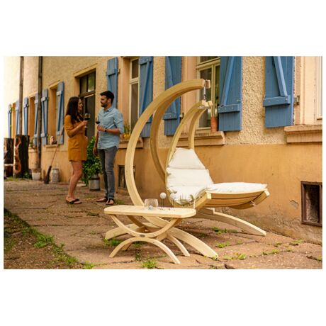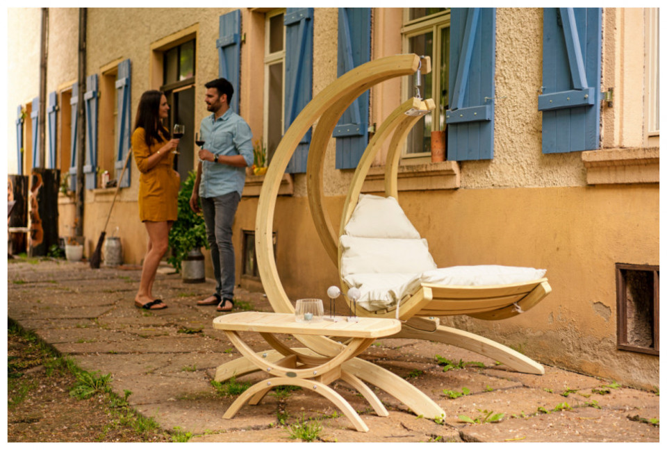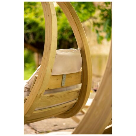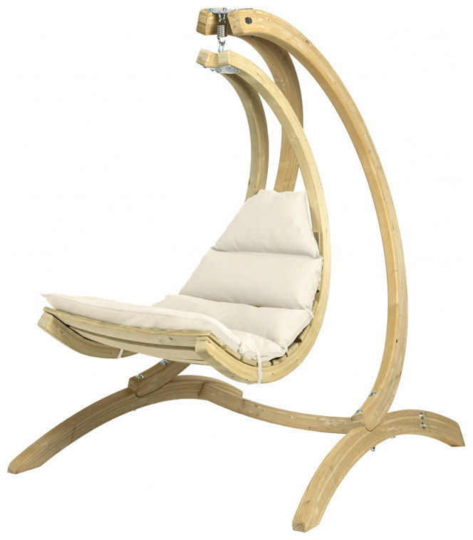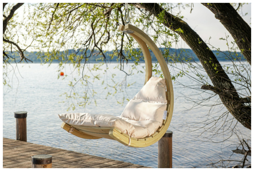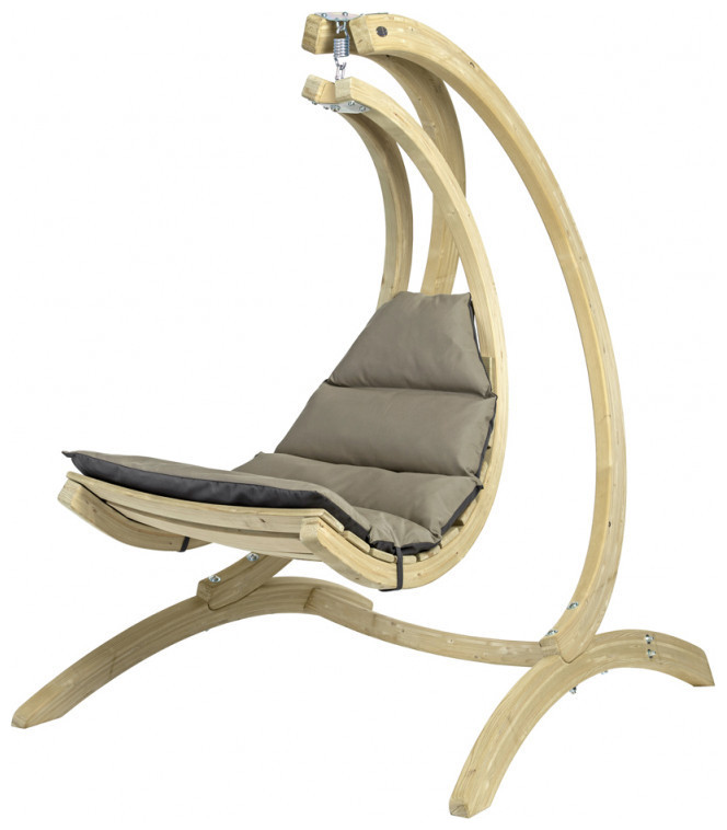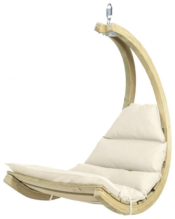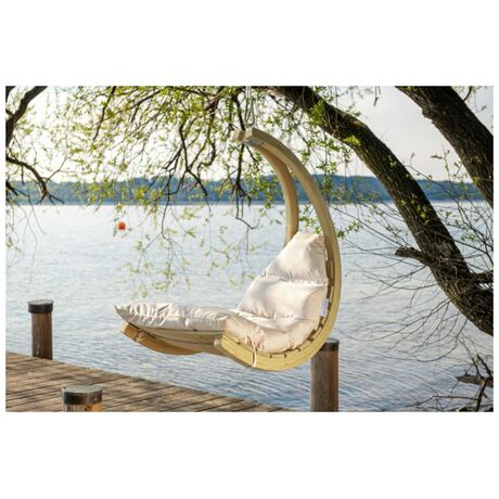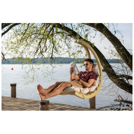 Είναι κατασκευασμένο από, ανθεκτικό στις καιρικές συνθήκες, ξύλο ερυθρελάτης. Η υψηλής ποιότητας πολυστρωματική κόλλα καθιστά το Swing Lounger ιδιαίτερα σταθερό και ασφαλή. Το εξαιρετικά παχύ και αδιάβροχο στρώμα είναι η εγγύησή σας για τέλεια χαλάρωση. Φοράει ένα ανθεκτικό κάλυμμα Agora (είναι τόσο μαλακό όσο το βαμβάκι) πάνω από το στρώμα όπου είναι ανθεκτικός στις κακές καιρικές συνθήκες καθώς και στις ακτίνες του ηλίου. Είναι επίσης ανθεκτικό σε μούχλα, μη ευαίσθητο στη βρωμιά και εύκολο στον καθαρισμό. Το Swing Lounger μπορείτε να την τοποθετήσετε σε ένα δέντρο, σε μία πέργκολα στο μπαλκόνι σας, να το συνδυάσετε με την βάση Amazonas Globo Stand (δεν περιλαμβάνεται) ή ακόμη και στο πάτωμα στον εσωτερικό χώρο του σπιτιού σας.Περιλαμβάνεται το σπειροειδές ελατήριο.