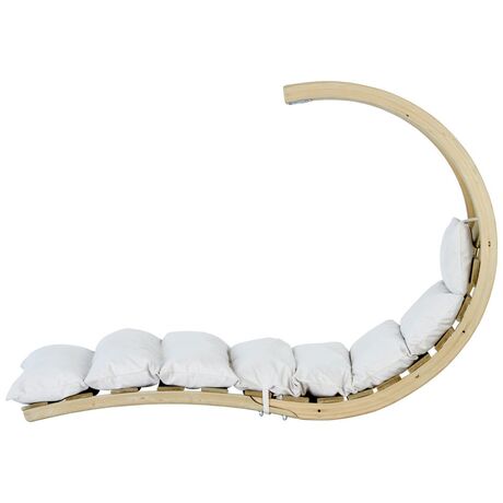 Είναι κατασκευασμένο από, ανθεκτικό στις καιρικές συνθήκες, ξύλο ερυθρελάτης. Η υψηλής ποιότητας πολυστρωματική κόλλα καθιστά το Swing Lounger ιδιαίτερα σταθερό και ασφαλή. Το εξαιρετικά παχύ και αδιάβροχο στρώμα είναι η εγγύησή σας για τέλεια χαλάρωση. Φοράει ένα ανθεκτικό κάλυμμα Agora (είναι τόσο μαλακό όσο το βαμβάκι) πάνω από το στρώμα όπου είναι ανθεκτικός στις κακές καιρικές συνθήκες καθώς και στις ακτίνες του ηλίου. Είναι επίσης ανθεκτικό σε μούχλα, μη ευαίσθητο στη βρωμιά και εύκολο στον καθαρισμό. Το Swing Lounger μπορείτε να την τοποθετήσετε σε ένα δέντρο, σε μία πέργκολα στο μπαλκόνι σας, να το συνδυάσετε με την βάση Amazonas Globo Stand (δεν περιλαμβάνεται) ή ακόμη και στο πάτωμα στον εσωτερικό χώρο του σπιτιού σας.Περιλαμβάνεται το σπειροειδές ελατήριο.
