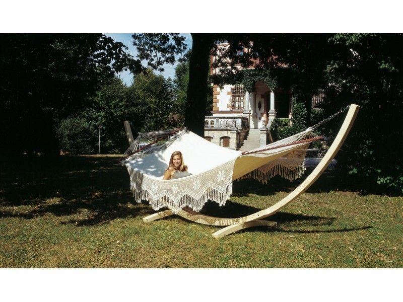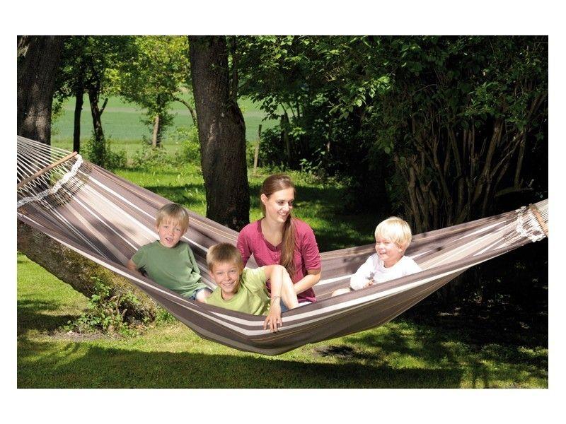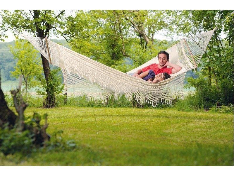 Mία απίθανη XXL αιώρα Amazonas από την Βραζιλία που θα δώσει φοβερά εξωτικό χρώμα στο χώρο σας! Κατασκευασμένη από ειδικό και χοντρής πλέξης ύφασμα EllTex, οικολογικό βαμβάκι με πρόσμιξη polyester, που την καθιστά εξαιρετικά αδιάβροχη και ανθεκτική στη φθορά, το ξέφτισμα και το ξεθώριασμα, αλλά και αναπαυτική και απαλή στην επιφάνειά της, τοποθετείται εύκολα στον κήπο σας ή οπουδήποτε αλλού χάρη στα ειδικά μακριά σχοινιά της και τα extra αξεσουάρ στήριξης ή την κατάλληλη ξύλινη/μεταλλική βάση Amazonas. Την τέλεια εμφάνιση και σταθερότητά της εξασφαλίζει επιπλέον το πολύ καλής ποιότητας ξύλο της ράβδου απο την Βραζιλία. Αναμφίβολα, η αντοχή και η πολυτέλεια της "Palacio" την καθιστούν την ιδανική επιλογή όλης της οικογένειας για ατέλειωτες στιγμές χαλάρωσης, απόλαυσης και ονειροπόλησης!