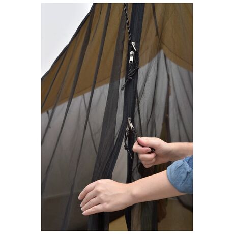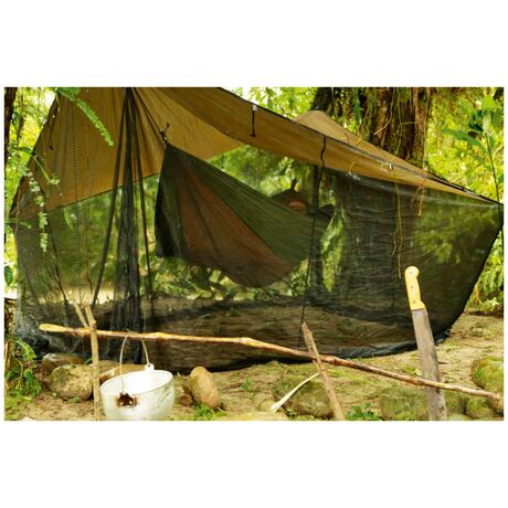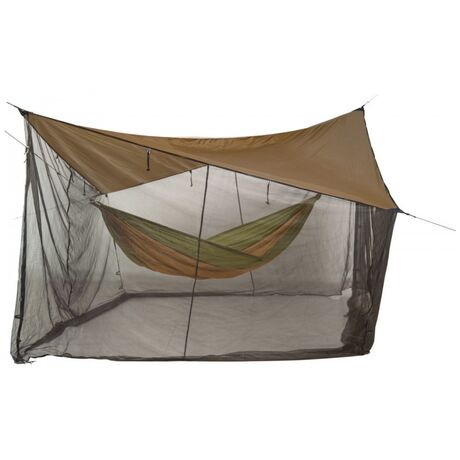 Το 2 σε 1 Tarp - Τέντα και κουνουπιέρα μαζί. Το Tarp-Τέντα Κουνουπιέρα συνδυάζει δύο λειτουργίες μαζί. Ως Τarp για αιώρες με τριών διαδρομών φερμουάρ ή ως Tarp τέντα με την κουνουπιέρα να ανεβαίνει ψηλά για κάθε Outdoor δραστηριότητα. Κρεμιέται εύκολα.Με τους κρίκους καραμπίνας και με τα 8 Υ πασαλάκια μπορεί να κρεμαστεί πολύ εύκολα. ( Κρίκοι καραμπίνας και πασαλάκια συμπεριλαμβάνονται ). Η κουνουπιέρα πολύ εύκολα μπορεί να ρολαριστεί προς τα επάνω και μικρές θήκες - τσάντες για να μπουν μέσα τα σχοινιά συμπεριλαμβάνονται επίσης.Με την περιμετρική κουνουπιέρα προσφέρει στο πανάλαφρο Tarp την απόλυτη προστασία απο τα ενοχλητικά έντομα και από τον καιρό. Με τα ενσωματωμένα φερμουάρ για είσοδο και έξοδο το Moskito Tarp είναι ιδανικό για όλες τις Ultra Light αιώρες της Amazonas αλλά και για κάθε Outdoor δραστηριότητα.