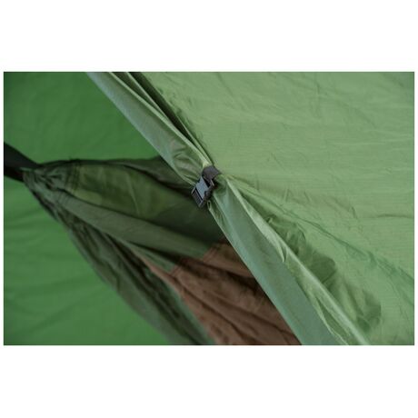 Είναι ακριβώς προσαρμοσμένη στις διαστάσεις της κατηγορίας των ελαφρυών αιώρων.Με τις μεταβλητές πλευρές του, προστατεύει την αιώρα από τον άνεμο και τη βροχή. Έτσι μπορείτε να χρησιμοποιήσετε την αιώρα ως υπαίθριο κρεβάτι ακόμα και σε δυσμενής συνθήκες! Μπορεί επίσης να χρησιμοποιηθεί ως σκηνή σαν μία ελαφριά εναλλακτική λύση.Συμπεριλαμβάνονται τα υλικά σύνδεσης, τα πασαλάκια καθώς και οι ρυθμιζόμενοι γάντζοι.Δεν περιλαμβάνεται η αιώρα.
