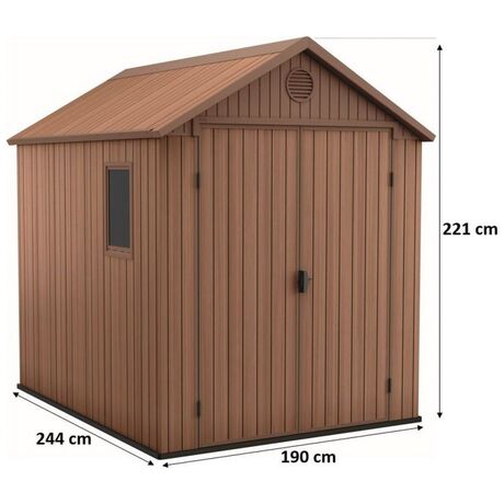 Αποθηκη κήπου της Keter Darwin 6x8 ιδανική για να προσαρμοστεί στον χώρο σας για να παραμένει πάντα ασφαλής και τακτοποιημένος. Στιβαρή κατασκευή με εμφάνιση ξύλου σε καφέ χρώμα για να ταιριάζει άψογα στον κήπο σας. Κατασκευασμένη από υλικά υψηλής αντοχής, δεν χρειάζεται συντήρηση για να παραμείνει στην αρχική της μορφή. Κατασκευασμένο από ρητίνη σταθεροποιημένη με υπεριώδη ακτινοβολία και κατασκευή διπλού τοίχου. Διαθέτει υποδοχή για λουκέτο για να αποθηκεύετε τον εξοπλισμό σας με ασφάλεια. Εύκολη και γρήγορη συναρμολόγηση χωρίς να χρειάζεται κάποιο ειδικό εργαλείο.