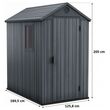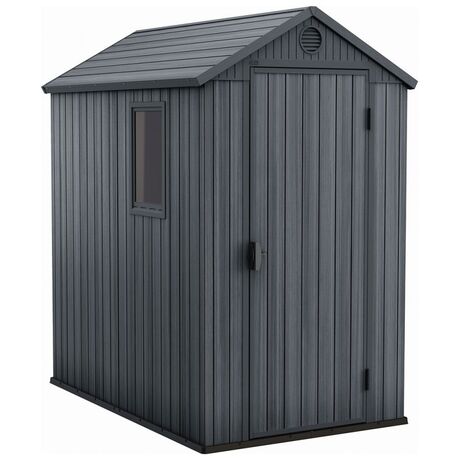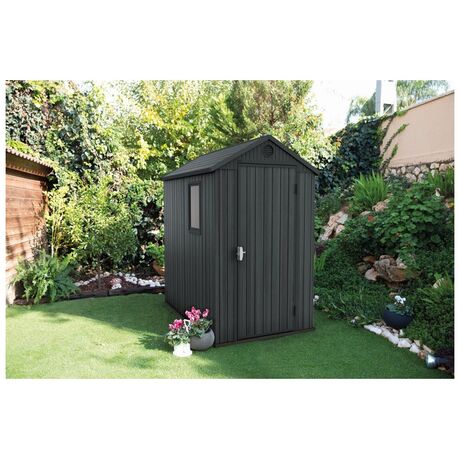 Αποθηκη κήπου της Keter Darwin 4x6 ιδανική για να προσαρμοστεί στον χώρο σας για να παραμένει πάντα ασφαλής και τακτοποιημένος. Στιβαρή κατασκευή με εμφάνιση ξύλου σε καφέ χρώμα για να ταιριάζει άψογα στον κήπο σας. Κατασκευασμένη από υλικά υψηλής αντοχής, δεν χρειάζεται συντήρηση για να παραμείνει στην αρχική της μορφή. Περιλαμβάνεται σταθερό παράθυρο το οποίο τοποθετείτε σε οποιοδήποτε σημείο σας βολεύει ακόμα κ στην πόρτα. Κατασκευασμένο από ρητίνη σταθεροποιημένη με υπεριώδη ακτινοβολία και κατασκευή διπλού τοίχου. Στην συσκευασία περιλαμβάνετε πάτωμα βαρεώς τύπου. Διαθέτει υποδοχή για λουκέτο για να αποθηκεύετε τον εξοπλισμό σας με ασφάλεια. Εύκολη και γρήγορη συναρμολόγηση χωρίς να χρειάζεται κάποιο ειδικό εργαλείο.