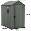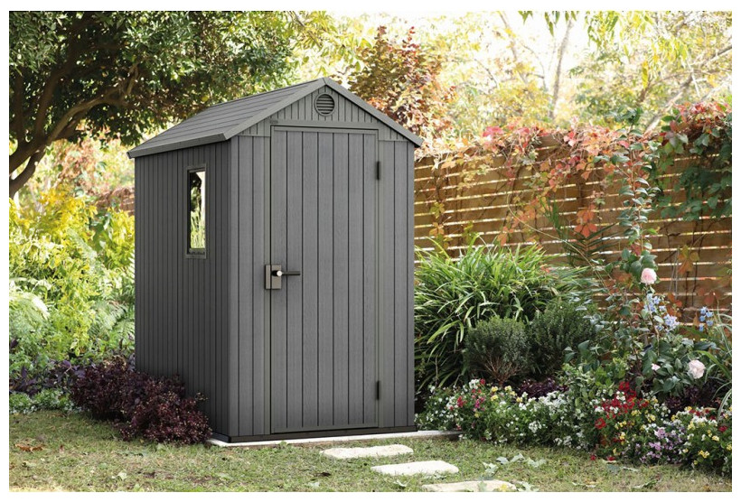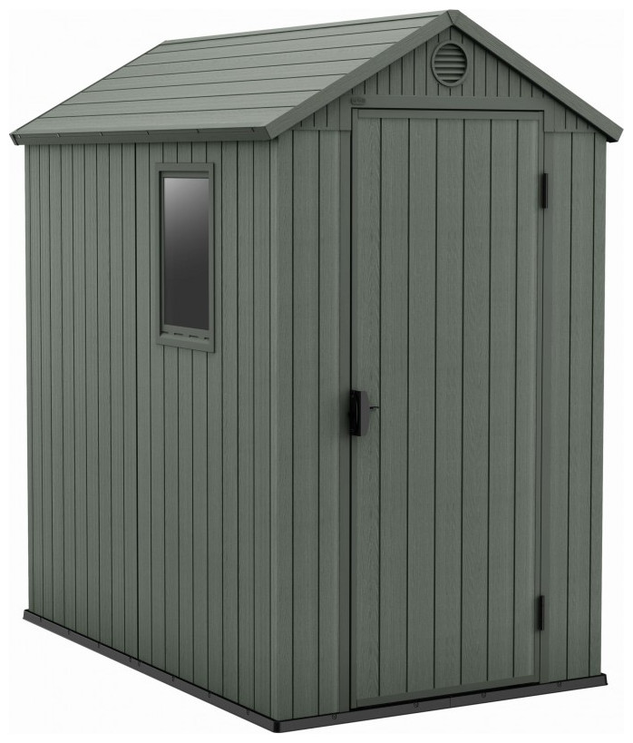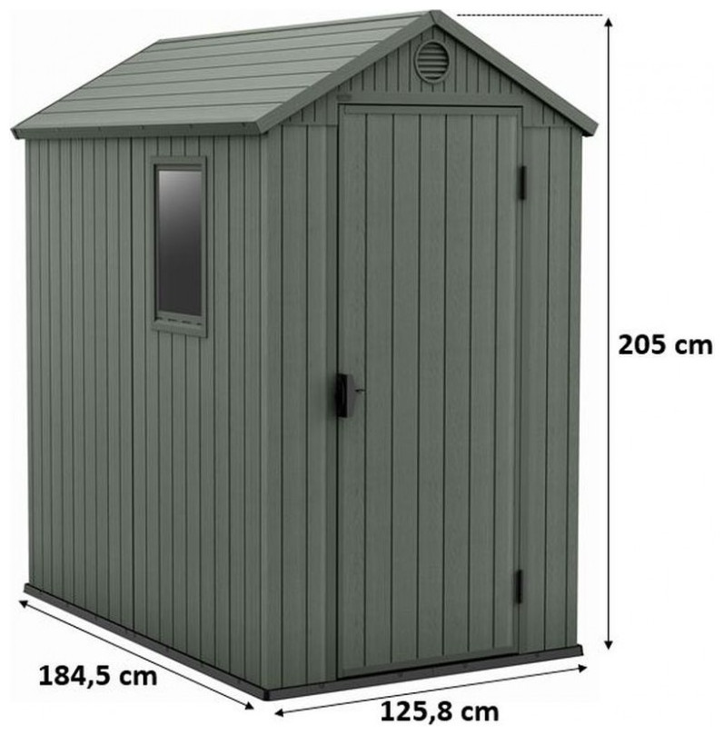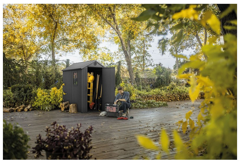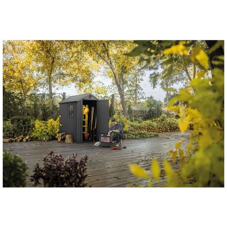 Αποθηκη κήπου της Keter Darwin 4x6 ιδανική για να προσαρμοστεί στον χώρο σας για να παραμένει πάντα ασφαλής και τακτοποιημένος. Στιβαρή κατασκευή με εμφάνιση ξύλου σε καφέ χρώμα για να ταιριάζει άψογα στον κήπο σας. Κατασκευασμένη από υλικά υψηλής αντοχής, δεν χρειάζεται συντήρηση για να παραμείνει στην αρχική της μορφή. Περιλαμβάνεται σταθερό παράθυρο το οποίο τοποθετείτε σε οποιοδήποτε σημείο σας βολεύει ακόμα κ στην πόρτα. Κατασκευασμένο από ρητίνη σταθεροποιημένη με υπεριώδη ακτινοβολία και κατασκευή διπλού τοίχου. Στην συσκευασία περιλαμβάνετε πάτωμα βαρεώς τύπου. Διαθέτει υποδοχή για λουκέτο για να αποθηκεύετε τον εξοπλισμό σας με ασφάλεια. Εύκολη και γρήγορη συναρμολόγηση χωρίς να χρειάζεται κάποιο ειδικό εργαλείο.