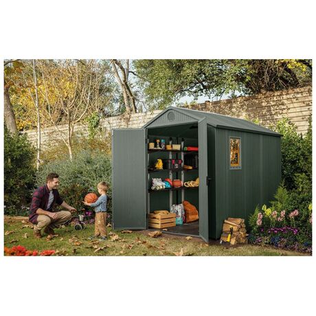 Αποθηκη κήπου της Keter Darwin 6x8 ιδανική για να προσαρμοστεί στον χώρο σας για να παραμένει πάντα ασφαλής και τακτοποιημένος. Στιβαρή κατασκευή με εμφάνιση ξύλου σε καφέ χρώμα για να ταιριάζει άψογα στον κήπο σας. Κατασκευασμένη από υλικά υψηλής αντοχής, δεν χρειάζεται συντήρηση για να παραμείνει στην αρχική της μορφή. Κατασκευασμένο από ρητίνη σταθεροποιημένη με υπεριώδη ακτινοβολία και κατασκευή διπλού τοίχου. Διαθέτει υποδοχή για λουκέτο για να αποθηκεύετε τον εξοπλισμό σας με ασφάλεια. Εύκολη και γρήγορη συναρμολόγηση χωρίς να χρειάζεται κάποιο ειδικό εργαλείο.