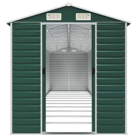 Η πολυτέλεια με την χρηστικότητα και προσφέρει πρωτότυπες λύσεις αποθήκευσης, ιδανικές για όλους τους χώρους όπως τον κήπο, το εξοχικό, το μπαλκόνι. Η μεταλλική αποθήκη Murryhill 191x980x198 εκ. διαθέτει επιφάνειες γαλβανισμένες εν θερμώ , η οποία προστατεύει την αποθήκη από διαβρώσεις και φθορές, που καθίστανται απειλητικές είτε λόγω αντίξοων καιρικών συγκυριών είτε με το πέρασμα του χρόνου. Επίσης διαθέτει χαμηλό αέτωμα με ατσάλινο πάνελ, το οποίο καθιστά την αποθήκη ακόμα πιο σταθερό και στιβαρό απέναντι σε δύσκολες καιρικές συνθήκες, όπως δυνατοί άνεμοι, χιονιάς, χαλάζι κλπ. Ο σχεδιασμός της εισόδου προσφέρει ευχρηστία και άνεση, καθώς οι διπλές συρόμενες πόρτες που διαθέτει ανοίγουν σε μεγάλο μήκος και έτσι η τοποθέτηση ακόμα και των πιο ογκωδών αντικειμένων, γίνεται εύκολα και αβασάνιστα.