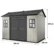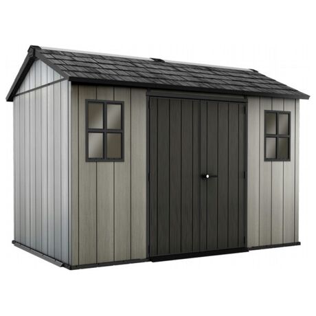 Πλαστική Αποθήκη Κήπου Oakland 11x7.5 της Keter με κομψό σχεδιασμό που συνδυάζει την αισθητική του ξύλου με την υψηλή αντοχή. Ιδανική για την αποθήκευση και προστασία του εξοπλισμού σας από τις εξωτερικές καιρικές συνθήκες και από την ακτινοβολία. Κατασκευασμένη από υλικά υψηλής ποιότητας DUOTECH σας δίνει την δυνατότητα να αποθηκεύσετε και βαρέως τύπου αντικείμενα. Δυνατότητα αλλαγής χρώματος των τοίχων μεμονωμένα για να προσαρμόσετε την αποθήκη ανάλογα με το γούστο σας και τις ανάγκες του χώρου σας. Το σύστημα κλειδώματος πόρτας(η κλειδαριά δεν περιλαμβάνεται) από ανοξείδωτο χάλυβα σας προσφέρει την μέγιστη προστασία για τον εξοπλισμό σας. Με διπλή πόρτα για εύκολη πρόσβαση ανα πάσα στιγμή και 2 σταθερά παράθυρα για φυσικό φωτισμό στο εσωτερικό της αποθήκης. Με άνετες εσωτερικές διαστάσεις ώστε να μπορεί ένας ενήλικας να σταθεί και να κινηθεί ελεύθερα στο εσωτερικό της αποθήκης.