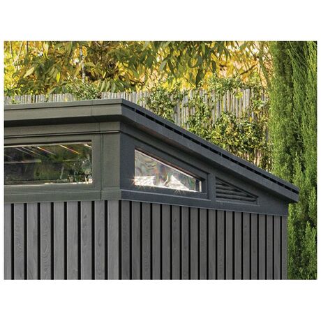 Το υπόστεγο κήπου Keter Signature 11x7 είναι μοντέρνο από κάθε άποψη. Με την κεκλιμένη οροφή και τα οριζόντια παράθυρα, διαθέτει κομψό, σύγχρονο σχεδιασμό. Τα διπλά τοιχώματα είναι κατασκευασμένα από DecoCoat με πλαστική βάση, προσφέροντας την εμφάνιση και την αίσθηση του ξύλου, παρέχοντας παράλληλα όλα τα πλεονεκτήματα του πλαστικού. Αυτό το υπόστεγο κήπου δεν απαιτεί συντήρηση και είναι ανθεκτικό στις καιρικές συνθήκες. Παραδίδεται ως κιτ και μπορεί εύκολα να συναρμολογηθεί από εσάς και ένα ακόμη άτομο. Ένα δάπεδο περιλαμβάνεται ως στάνταρ. Απλά πρέπει να εξασφαλίσετε μια επίπεδη, ομοιόμορφη επιφάνεια. Μπορείτε επίσης εύκολα να κλειδώσετε το υπόστεγο με ένα λουκέτο (δεν περιλαμβάνεται).
