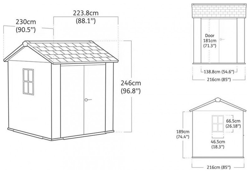 Πλαστική Αποθήκη Κήπου 230x224x246cm Keter Newton Plus Wide 7x7.5 Κωδ. 17212878 Γκρι