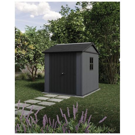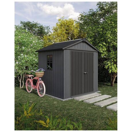 Πλαστική αποθήκη κήπου Keter Newton Plus Wide 7x7.5, ανθεκτική και ευρύχωρη, ιδανική για αποθήκευση εργαλείων.