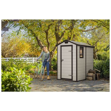 Πλαστική Αποθήκη Κήπου 4x6 Manor από την Keter, ιδανική για την αποθήκευση και προστασία του εξοπλισμού σας από τις εξωτερικές καιρικές συνθήκες.