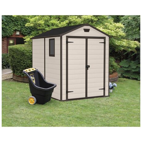 Περνώντας χρόνο μαζί στον κήπο σημαίνει ποιότητα ζωής σε μια τακτοποιημένη ατμόσφαιρα. Το πλαστικό υπόστεγο κήπου Manor 6x8 DD προσφέρει βέλτιστο αποθηκευτικό χώρο που χαρακτηρίζει το υπαίθριο στυλ μας. Διαθέτει ευρύχωρο χώρο για την προστασία όλων των σκευών κήπου από τον αέρα και τη βροχή. Ωστόσο, δεν καταλαμβάνει πολύ εξωτερικό χώρο λόγω του μικρού μεγέθους του. Με τον κλασικό σχεδιασμό και την εξαιρετική του σταθερότητα, είναι η τέλεια λύση αποθήκευσης. Τόσο η διπλή πόρτα όσο και το παράθυρο υπογραμμίζουν τον πρακτικό και χρηστικό χαρακτήρα. Οι ιδιαίτερες ιδιότητες του πλαστικού υλικού του σπιτιού παρέχουν πολλά χρόνια ενθουσιασμού χωρίς καμία περαιτέρω εργασία. Μια άνετη λύση αποθήκευσης που ενσωματώνεται υπέροχα στον κήπο.