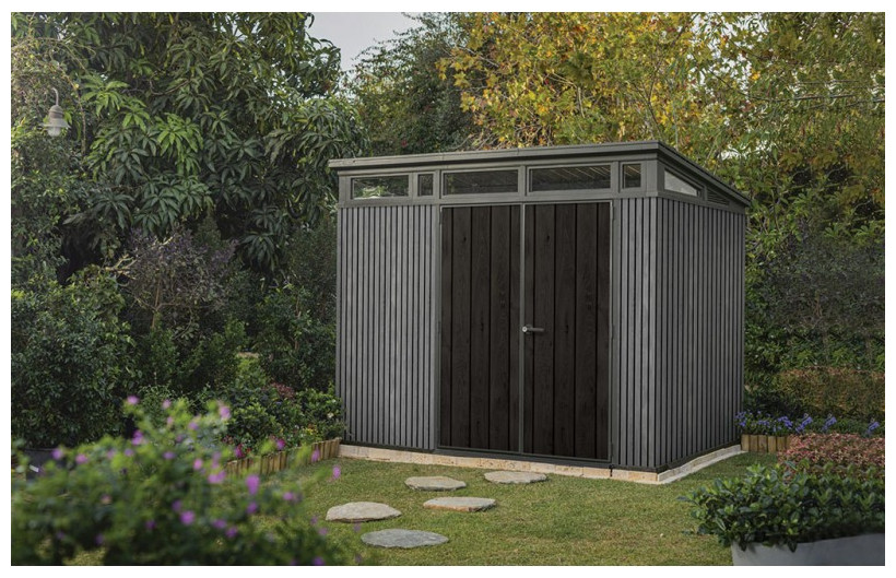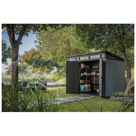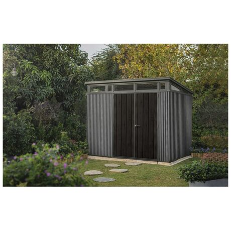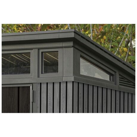 Το υπόστεγο κήπου Keter Signature 9x7 είναι μοντέρνο από κάθε άποψη. Με την κεκλιμένη οροφή και τα οριζόντια παράθυρα, διαθέτει κομψό, σύγχρονο σχεδιασμό. Τα διπλά τοιχώματα είναι κατασκευασμένα από DecoCoat με πλαστική βάση, προσφέροντας την εμφάνιση και την αίσθηση του ξύλου, παρέχοντας παράλληλα όλα τα πλεονεκτήματα του πλαστικού. Αυτό το υπόστεγο κήπου δεν απαιτεί συντήρηση και είναι ανθεκτικό στις καιρικές συνθήκες. Παραδίδεται ως κιτ και μπορεί εύκολα να συναρμολογηθεί από εσάς και ένα ακόμη άτομο. Ένα δάπεδο περιλαμβάνεται ως στάνταρ. Απλά πρέπει να εξασφαλίσετε μια επίπεδη, ομοιόμορφη επιφάνεια. Μπορείτε επίσης εύκολα να κλειδώσετε το υπόστεγο με ένα λουκέτο (δεν περιλαμβάνεται).