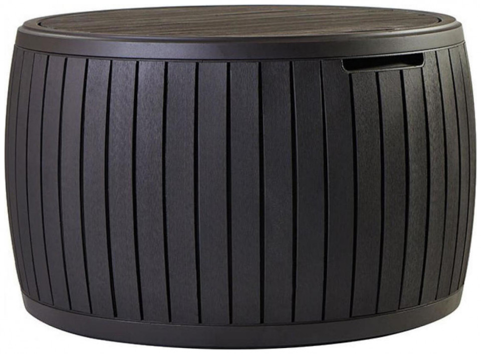 Το μπαούλο Circa Wood είναι κατασκευασμένο από υψηλής ποιότητας πλαστικό υλικό σε μοντέρνο σχεδιασμό και μπορεί να ικανοποιήσει ανάγκες αποθήκευσης τόσο σε εσωτερικούς όσο και εξωτερικούς χώρους. Έχει ειδικό σχεδιασμό πολλαπλών χρήσεων και μπορεί να λειτουργήσει είτε ως μέσο αποθήκευσης με χωρητικότητα 140 λίτρων, είτε ως κάθισμα ενηλίκου είτε ως βοηθητικό τραπεζάκι. Η δομή του αποτελείται από επένδυση ανθεκτικής και στιβαρής ρητίνης, η οποία προσφέρει στο μπαούλο τεράστιες αντοχές σε κάθε είδους καιρικές συνθήκες και θερμοκρασίες και διατηρεί το περιεχόμενο στεγανό και αεριζόμενο. Μπορείτε να αποθηκεύσετε κουβέρτες, μαξιλάρες, είδη ραπτικής, παιχνίδια, είδη κήπου και πολλά ακόμα. Με πολύ εντυπωσιακή wood εικόνα και ενσωματωμένες χειρολαβές για εύκολη μετακίνηση, είναι ικανό να εξυπηρετήσει πολλές ανάγκες, αλλά και προσφέρει μία μοντέρνα νότα στο σαλόνι, την αυλή ή την βεράντα σας. Συναρμολογείται και αποσυναρμολογείται πανεύκολα, μόλις σε πέντε λεπτά, χωρίς να χρειάζονται ιδιαίτερα εργαλεία και θα το παραλάβετε σε μία επίπεδη και πολύ πρακτική συσκευασία. Εξασφαλίστε την τάξη στους χώρους σας με το εντυπωσιακά μοντέρνο μπαούλο, το οποίο σας υπόσχεται μακροχρόνιες λύσεις αποθήκευσης με την εγγύηση ποιότητας της Keter!