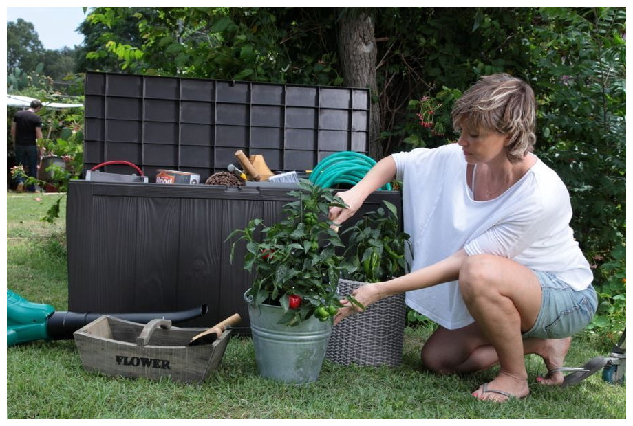 Ανθεκτικό, κομψό και εξαιρετικά ευκολόχρηστο το μπαούλο Sherwood του οίκου Keter θα σας λύσει τα χέρια, καθώς αποτελεί πανέξυπνη λύση αποθήκευσης αλλά και θα χρωματίσει με το μοναδικό του στυλ τους χώρους με καλαισθησία και γούστο. Διατηρεί τα αντικείμενα σε άριστη κατάσταση διατηρώντας τα στεγνά και αεριζόμενα, έχει εκτεταμένη αντοχή στις καιρικές συνθήκες και είναι κατάλληλο για να τοποθετειτηθεί τόσο σε εσωτερικούς χώρους όσο και σε εξωτερικούς χώρους όπως τη βεράντα, τον κήπο, το μπαλκόνι αλλά και σε οποιοδήποτε χώρο του σπιτιού σας. Είναι ιδανικό για την αποθήκευση καυσόξυλων, εργαλείων, ειδών κήπου, παιχνιδιών και άλλων αντικειμένων. Θα γίνει ο σύμμαχός σας για την τάξη και την καθαριότητα των χώρων. Το μπαούλο Keter Sherwood έχει χωρητικότητα 270L και η στιβαρή του κατασκευή μπορεί να υποστηρίξει μέχρι και 200 κιλά στο καπάκι του. Μετακινείται με πολύ ευκολία καθώς έχει χειρολαβές και ειδικούς κυλίνδρους. Χρειάζονται λιγότερα από πέντε λεπτά για την συναρμολόγηση του μπαούλου και δεν απαιτείται κανένα πρόσθετο εξειδικευμένο εργαλείο, καθώς όλα τα κομμάτια του κουμπώνουν μεταξύ τους. Κάντε στον εαυτό σας ένα υπέροχο δώρο και εξοικονομήστε χρόνο και χρήματα με το φοβερό σύστημα αποθήκευσης και πάντα με την εγγύηση ποιότητας της Keter!