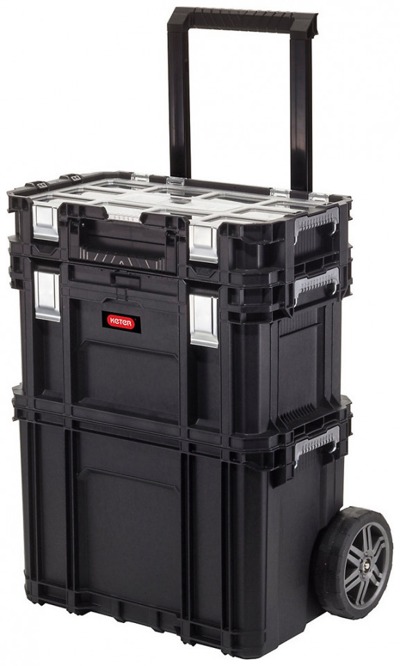 Αυτό το πλήρως προσαρμόσιμο, αρθρωτό σύστημα εργαλειοθήκης αποτελεί το τέλειο σύστημα αποθήκευσης και μεταφοράς εργαλείων. Διαθέτει τρία τμήματα που στοιβάζονται και κλειδώνουν μαζί σε ένα δίτροχο καρότσι, ώστε να μπορείτε να οργανώσετε και να μεταφέρετε τα εργαλεία και τα εξαρτήματα που χρειάζεστε για κάθε τύπο εργασίας. Με 2 ρυθμιζόμενα ράφια χωρητικότητας 25 κιλών το καθένα.
