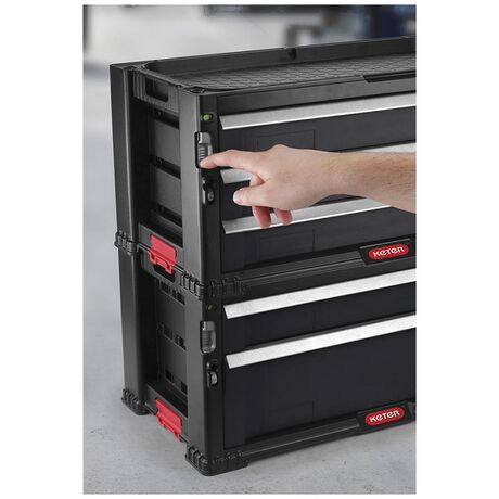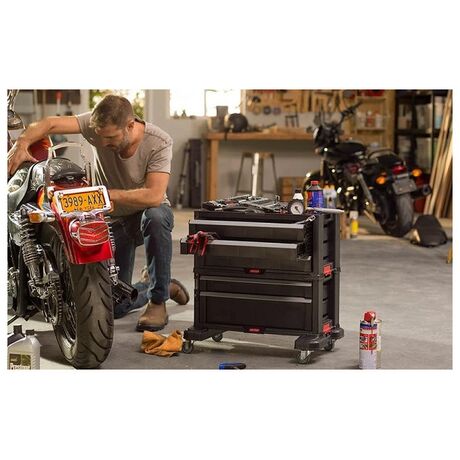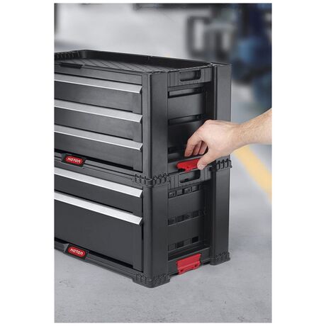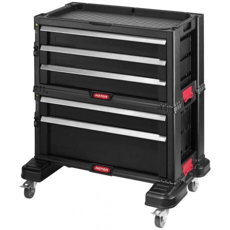 Πλαστικό Εργαλειοφόρος της Keter ιδανικός για την ασφαλή αποθήκευση και μεταφορά των εργαλείων σας. Βοηθά να διατηρήσετε τον χώρο σας ασφαλή και τακτοποιημένο, καθώς επίσης και τον εξοπλισμό σας στην αρχική του κατάσταση. Διαθέτει ρόδες για εύκολη μετακίνηση χωρίς να σηκώνετε βάρος. Η αρθρωτή σχεδίαση με μηχανισμό ασφάλισης & κλειδώματος επιτρέπει τη στοίβα της μονάδας με άλλες μονάδες - για πρόσθετη προσαρμογή και εξοικονόμηση χώρου. Ο διαθέσιμος χώρος στην επιφάνεια υποστηρίζει φορτίο έως 100 kg/sqm.